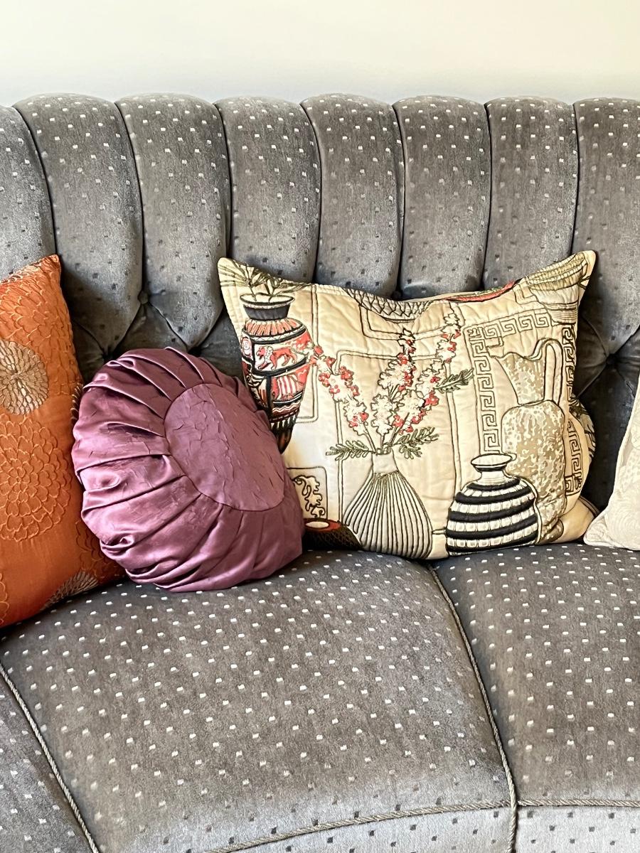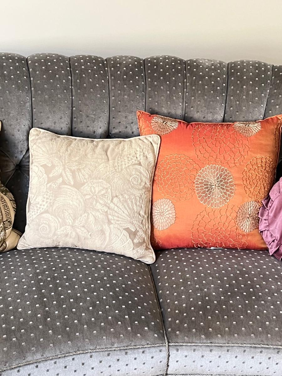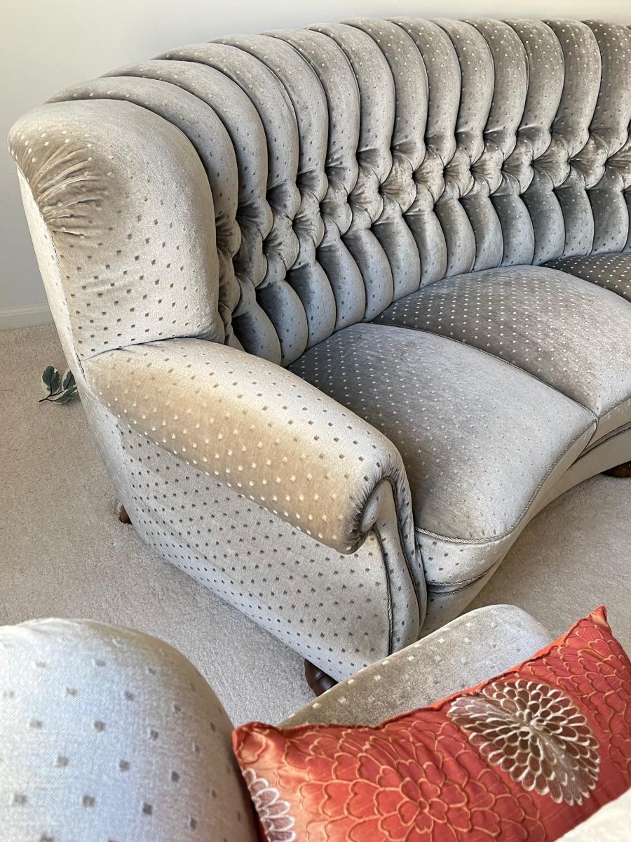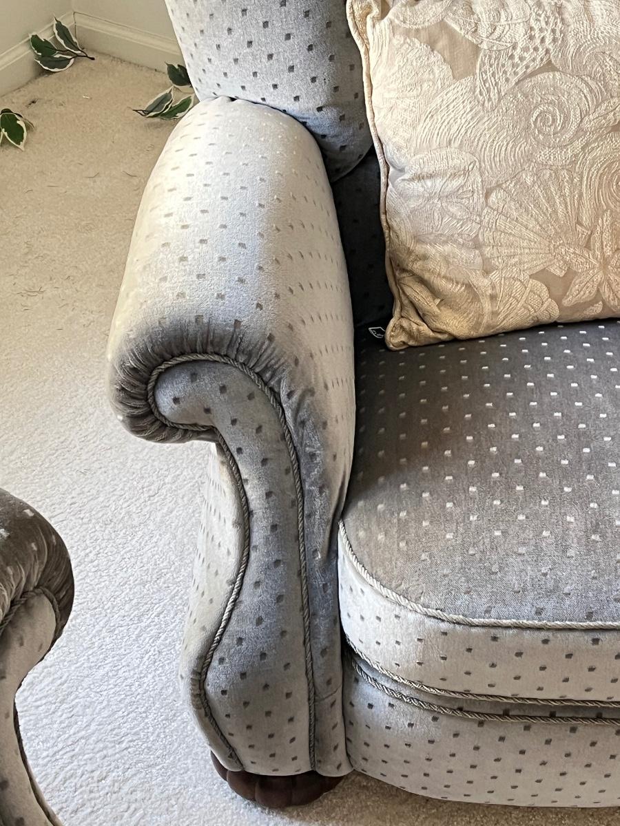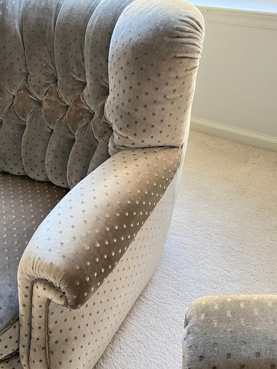 MOHAIR LOT 134L: Four-Seat Couch and Two Matching Chairs w / Throw Pillows