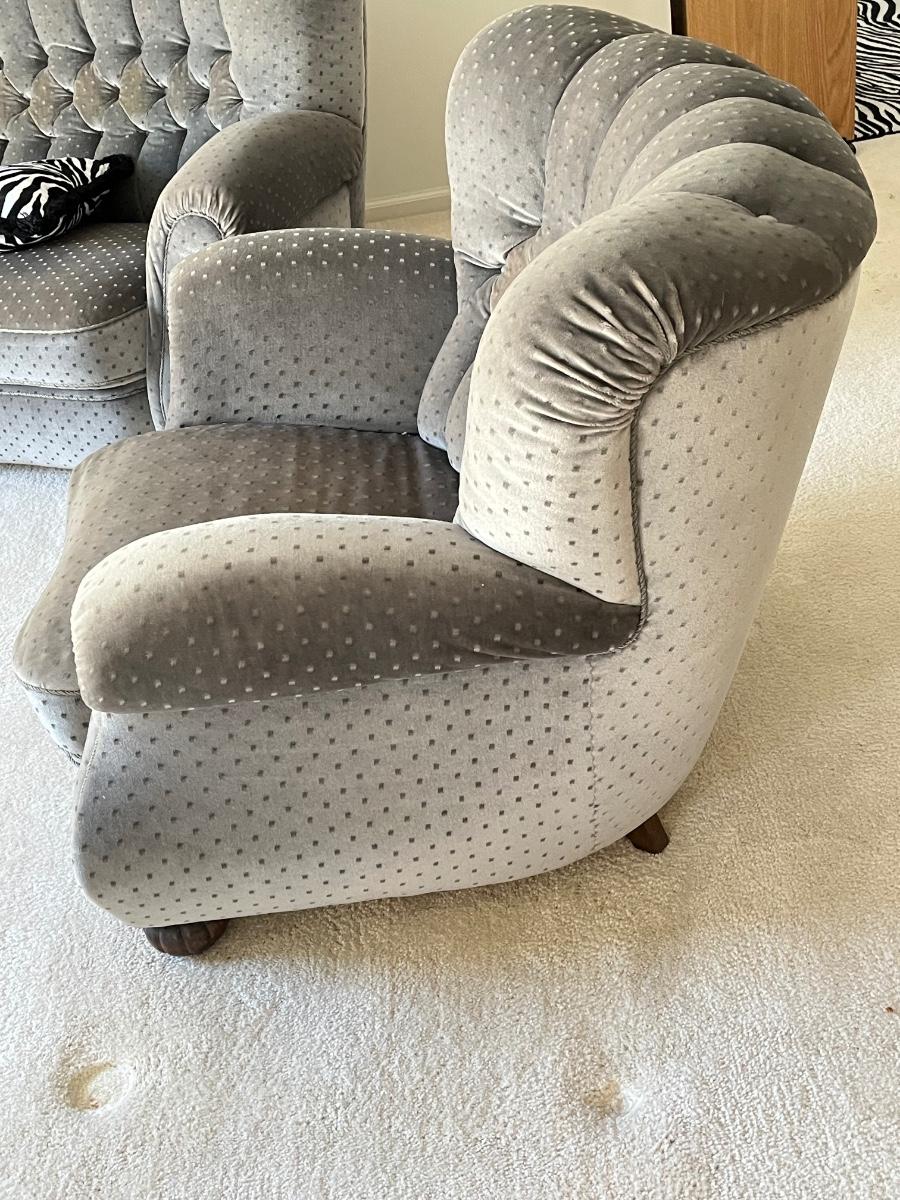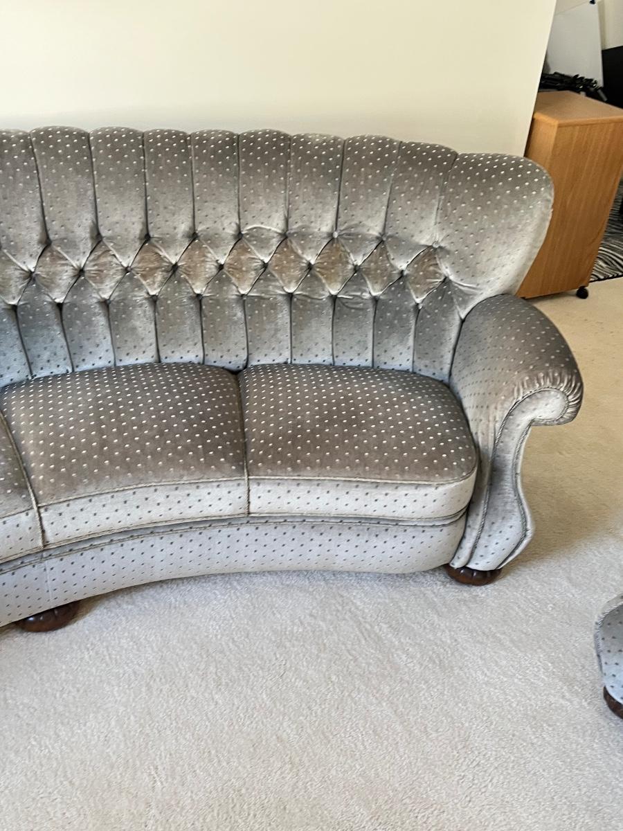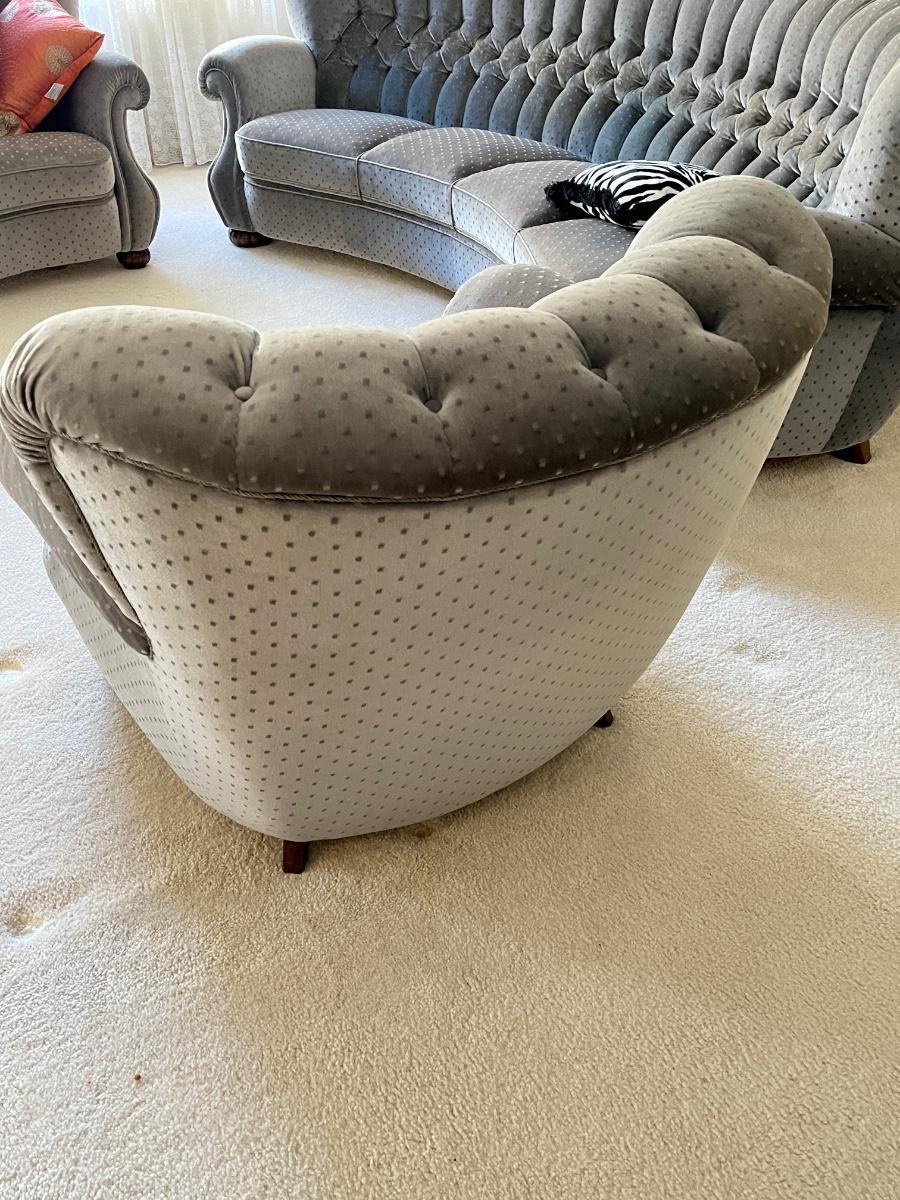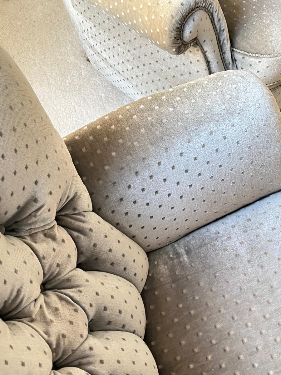 MOHAIR LOT 134L: Four-Seat Couch and Two Matching Chairs w / Throw Pillows