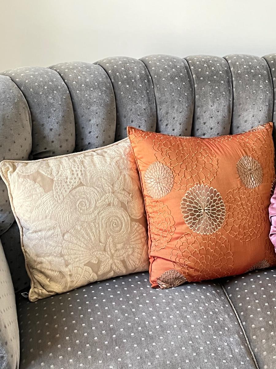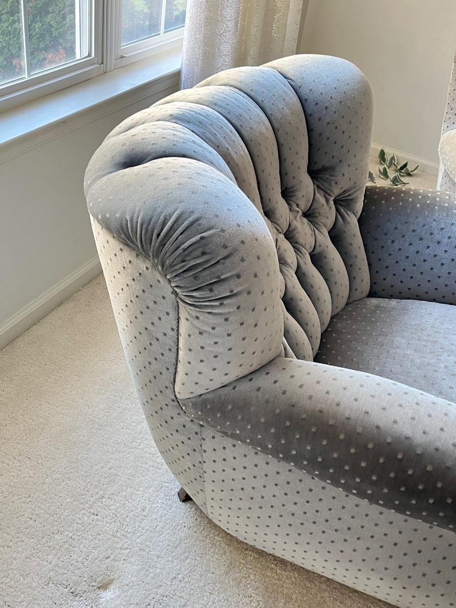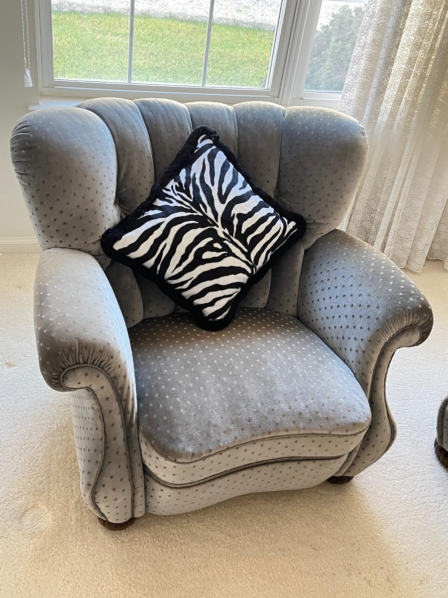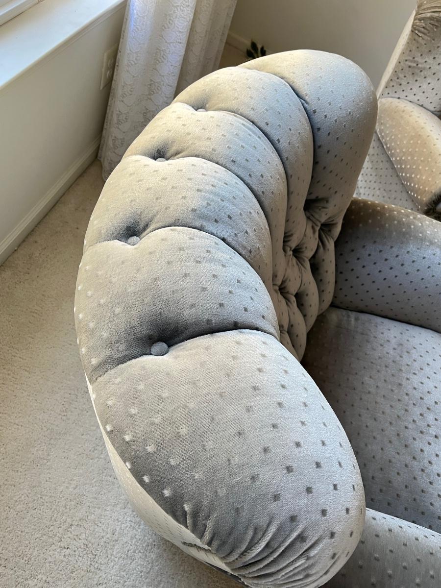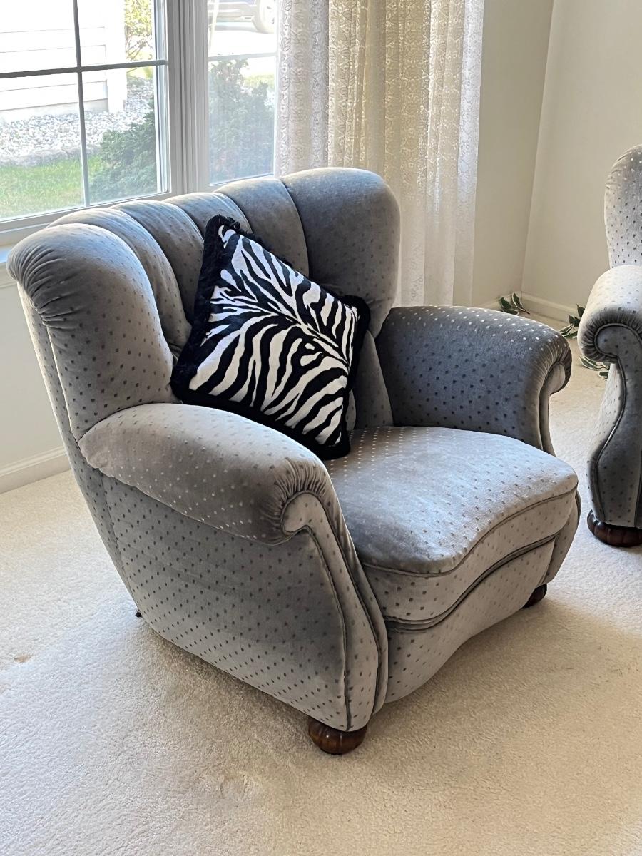 MOHAIR LOT 134L: Four-Seat Couch and Two Matching Chairs w / Throw Pillows