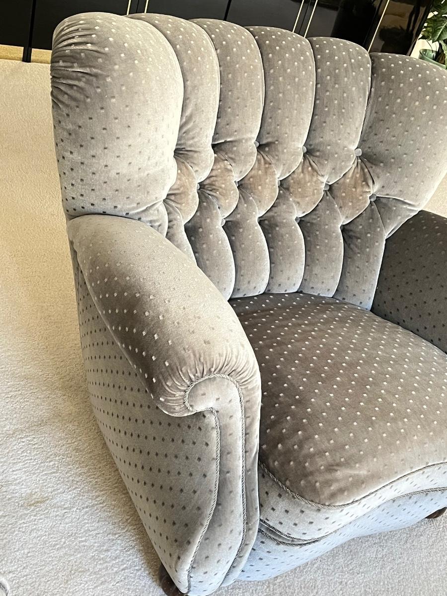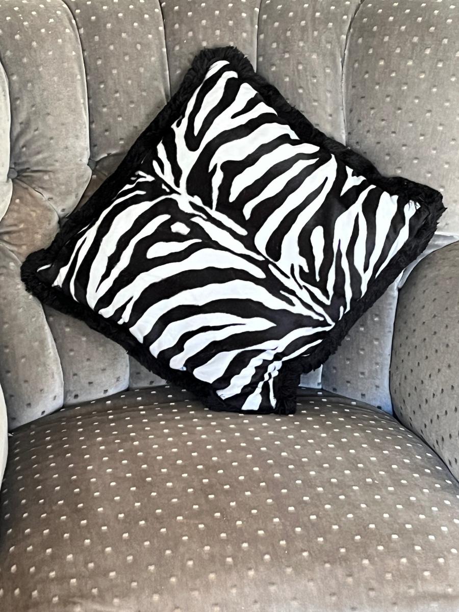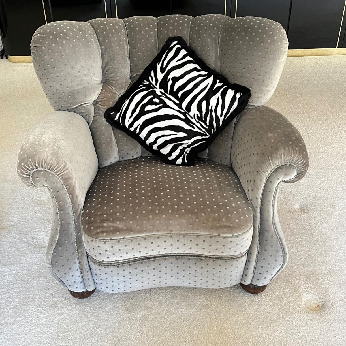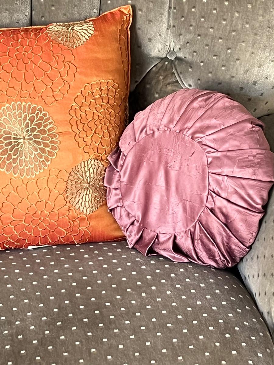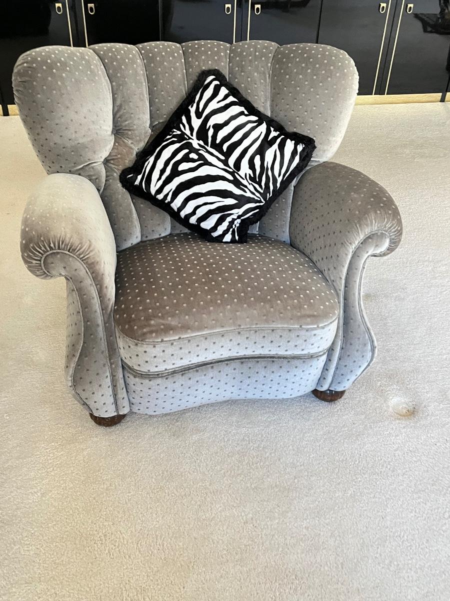 MOHAIR LOT 134L: Four-Seat Couch and Two Matching Chairs w / Throw Pillows