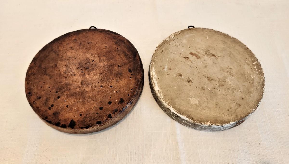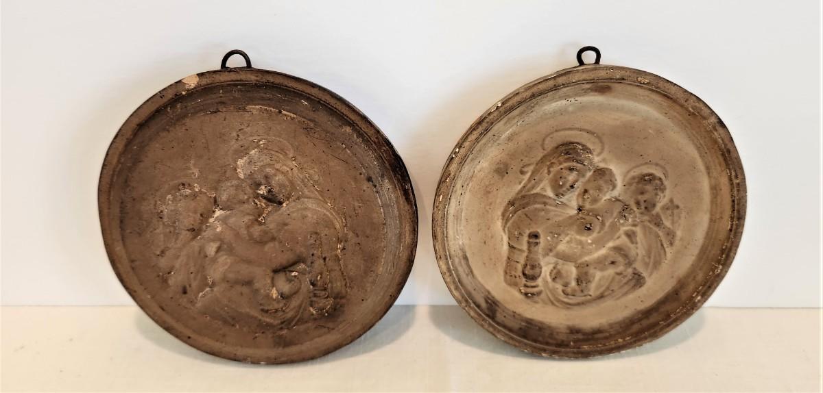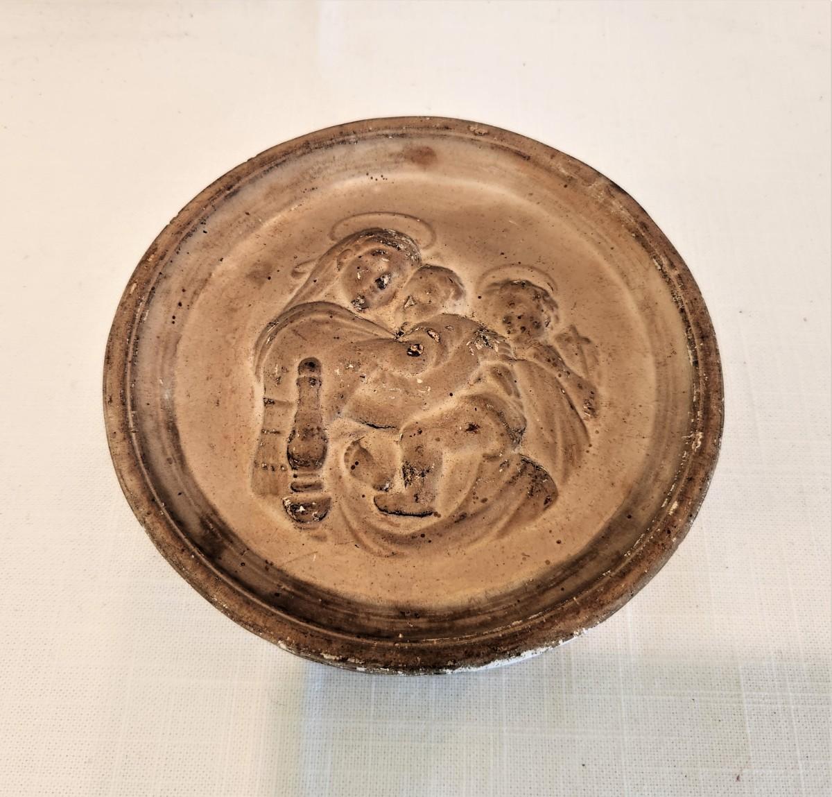 Interesting Antique plaster mold - Mary w/Christ Child & Angel - 6" across. Antique Condition.