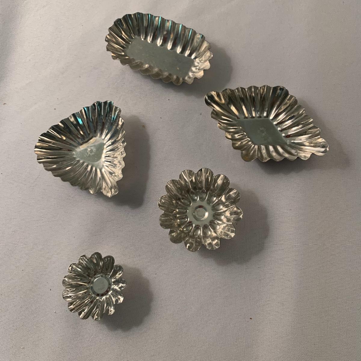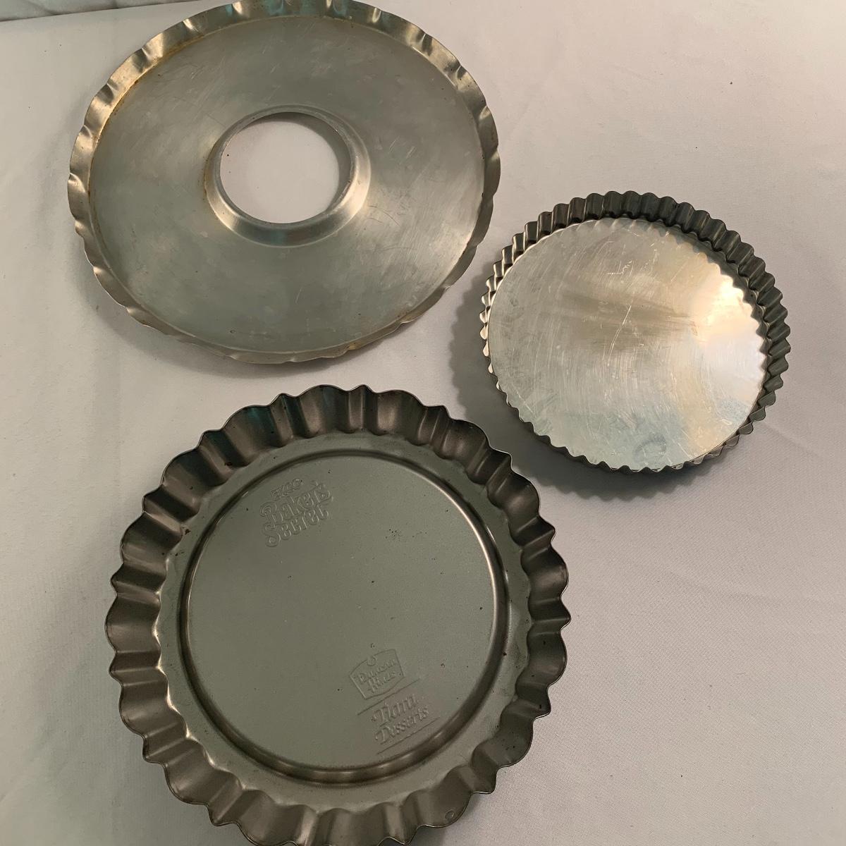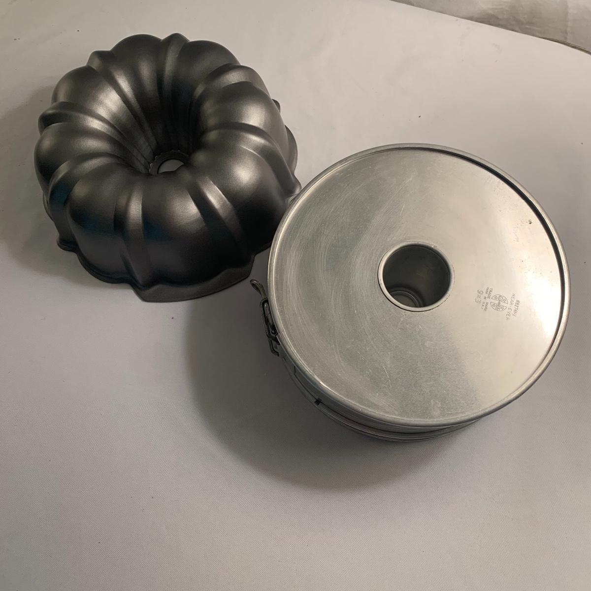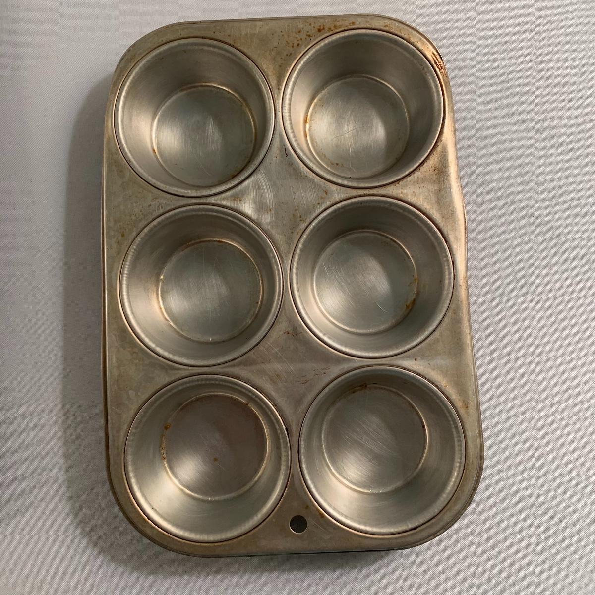 This lot has all sorts of pans for your baking needs! Some of these include bunt cakes pans, small and large cupcake pans, corn cooking pans, cake pans, and more. This look also includes small metal cookie cutters and molds. Some of the pans have nonstick coating and others are a lightweight metal material. Some pans have scratching (see photos). The largest pan measures about 15in x 11in.