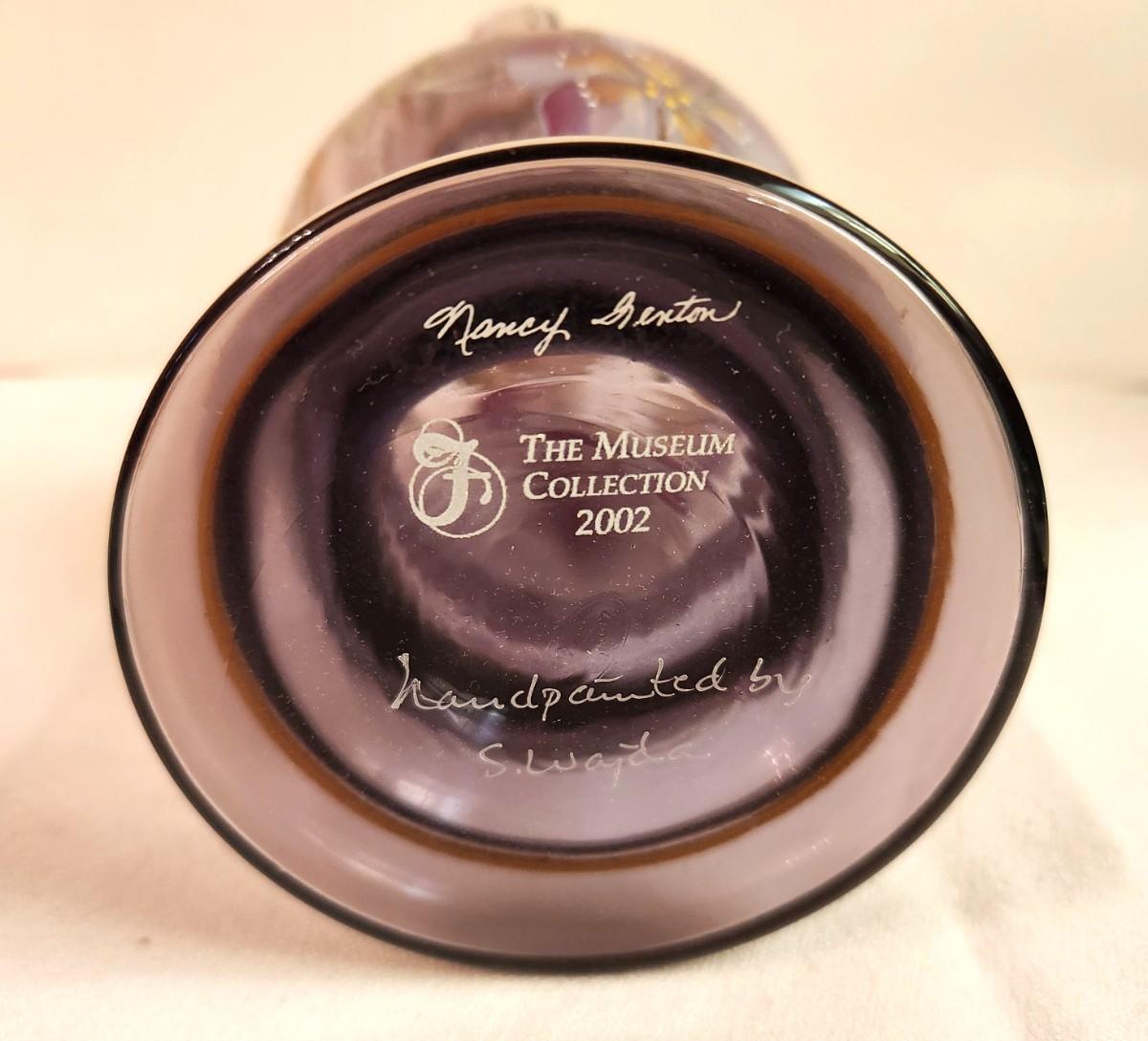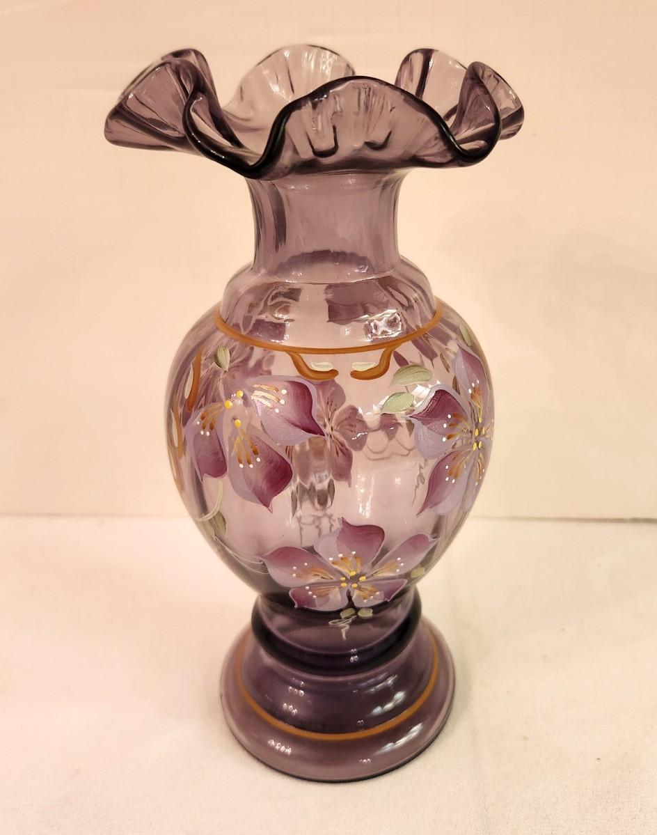 Fenton Art Glass Amethyst Vast 2002 Museum Collection - hand painted, has label. No box.