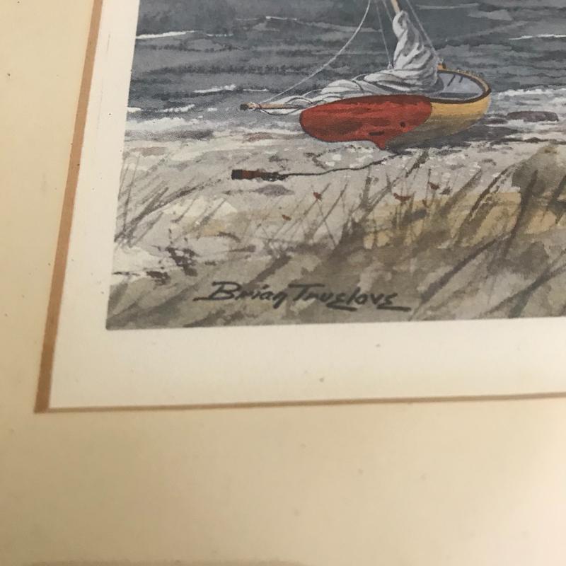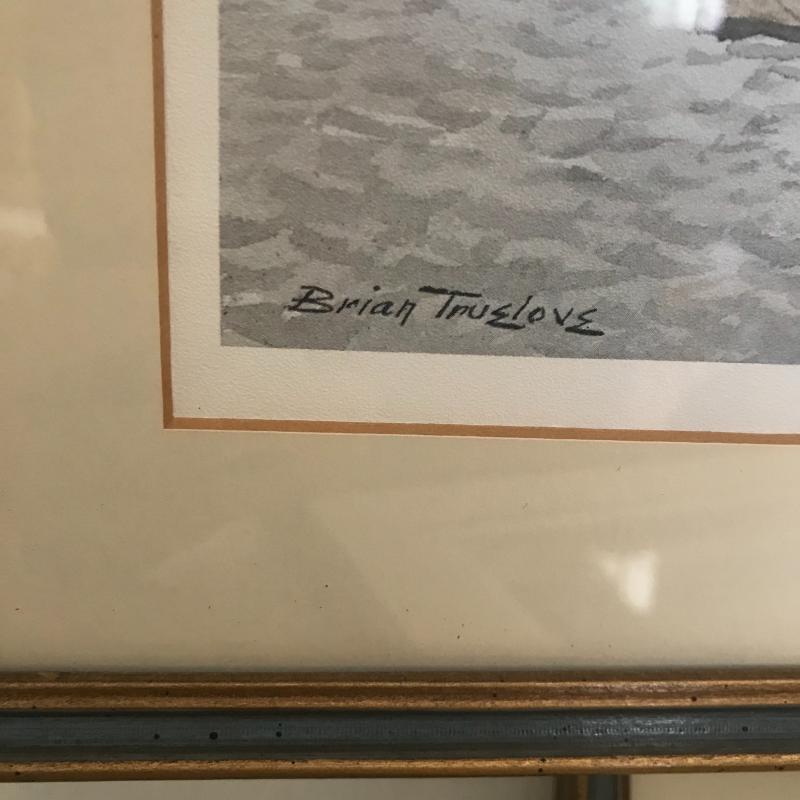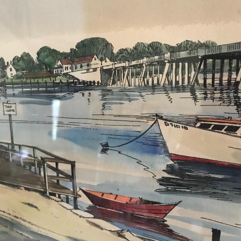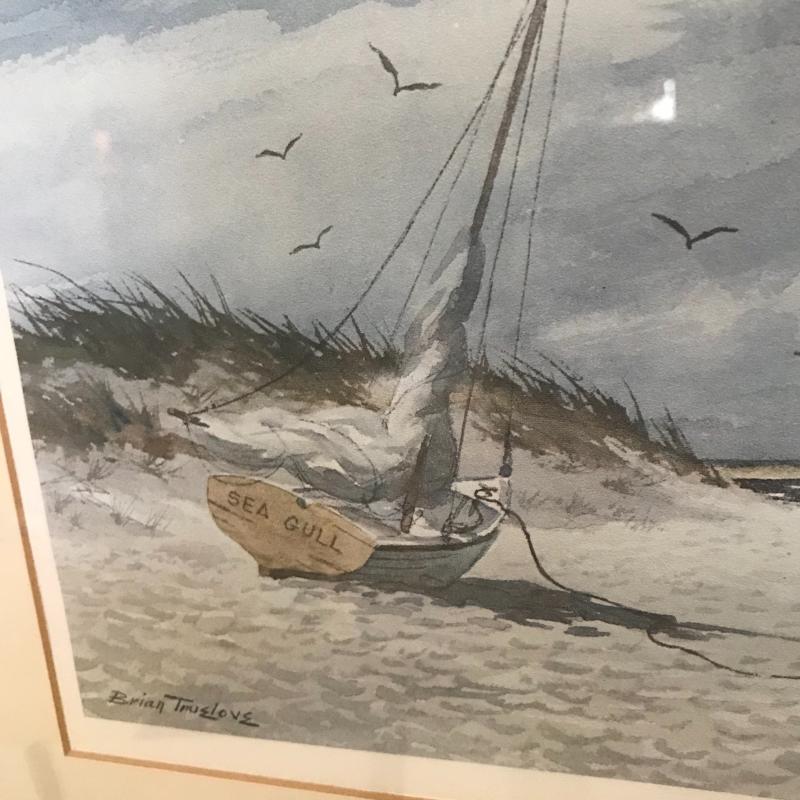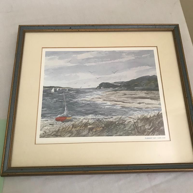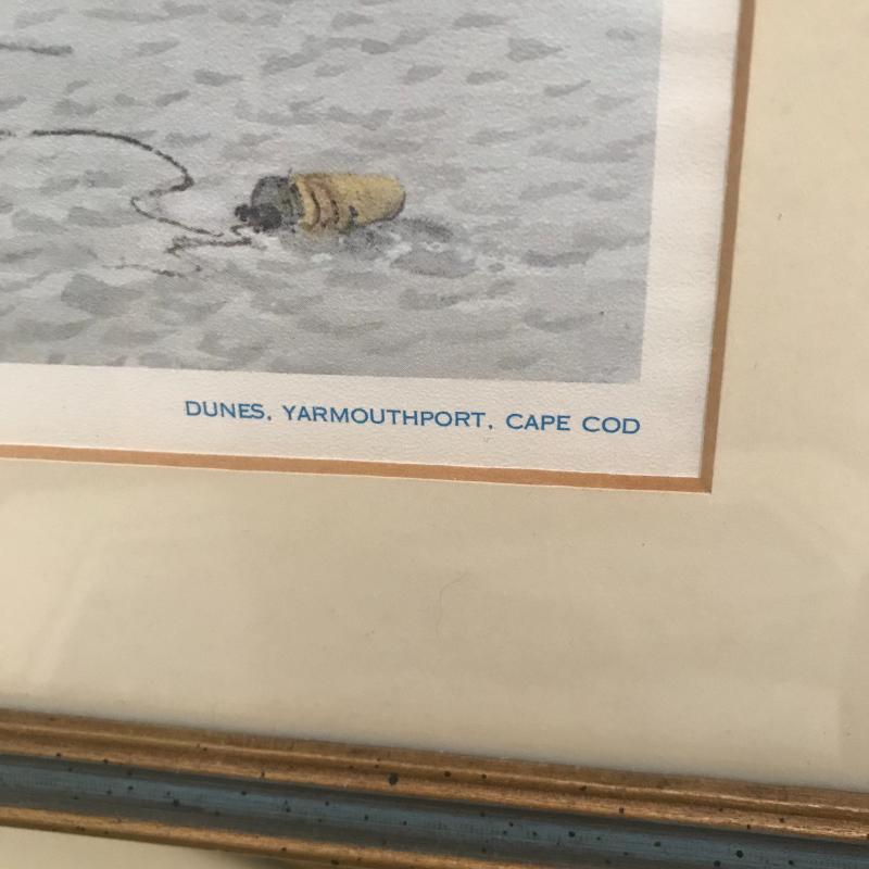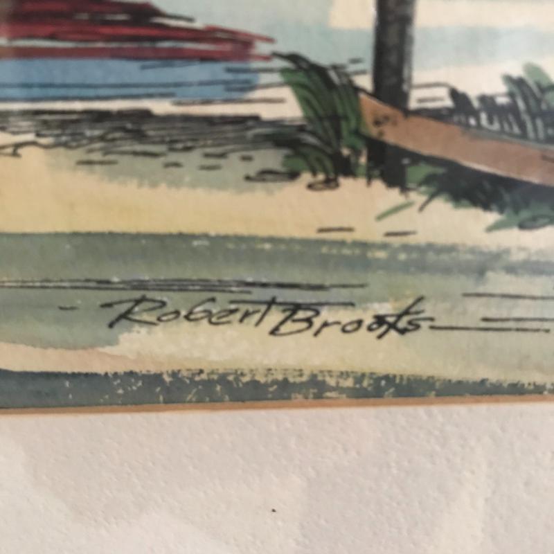Pair of Brian Truelove framed water colors in Pleasant Bay and Yarmouth. Both matted and framed measuring 12” x10.5”. Also two larger water colors with one being signed by Robert Brooks. They appear to be similar but the windmill one cannot be verified. These framed and matted paintings measure 16.5” x14.5”. Shipping available but please be aware that shipping art can be pricey. Please call UPS Store to get an estimate with measurements of frames.