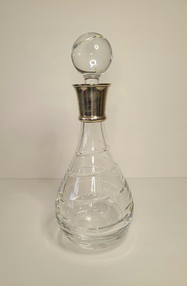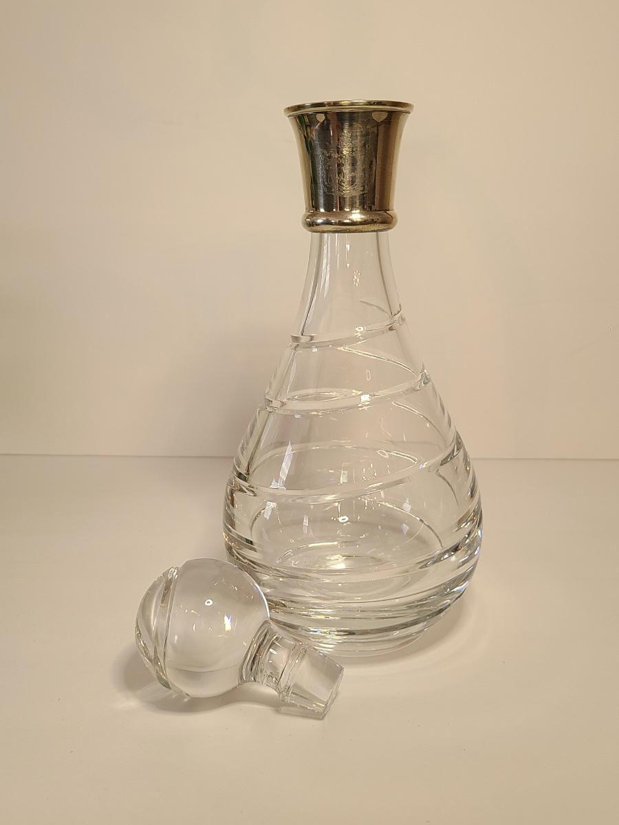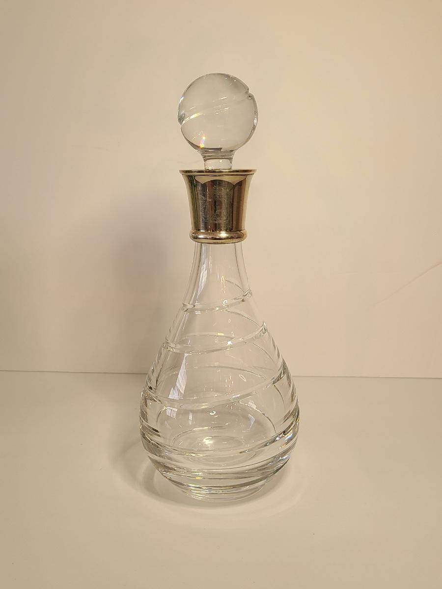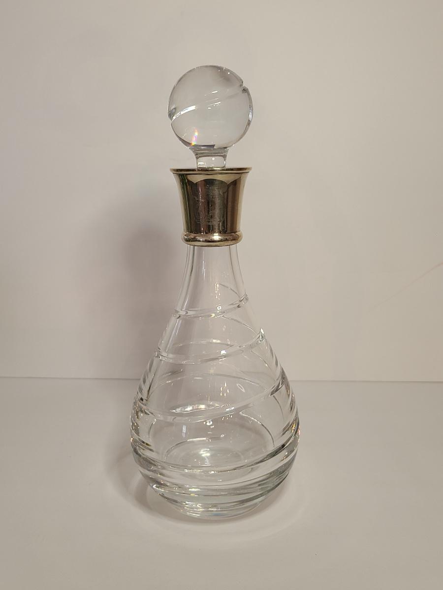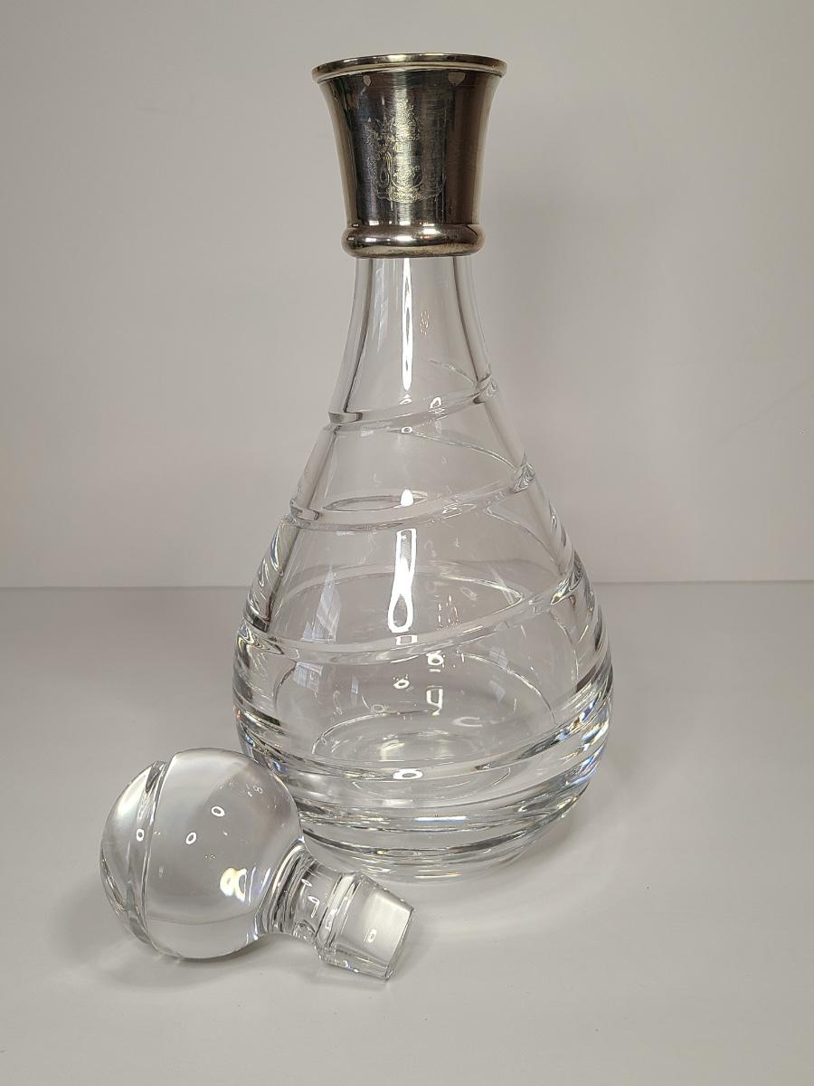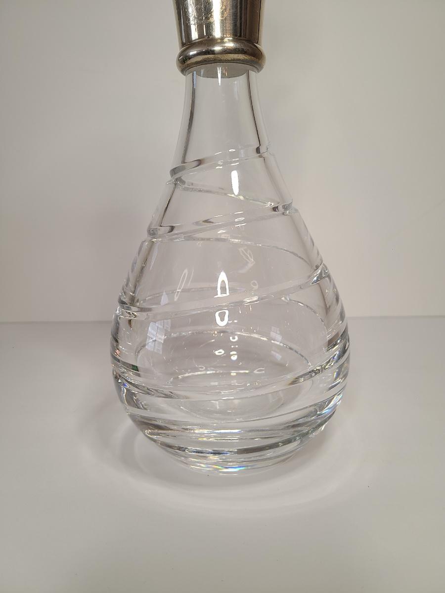 Lot 134: Elegant Carrs Sterling Silver Collared Spiral Cut Decanter ($450)