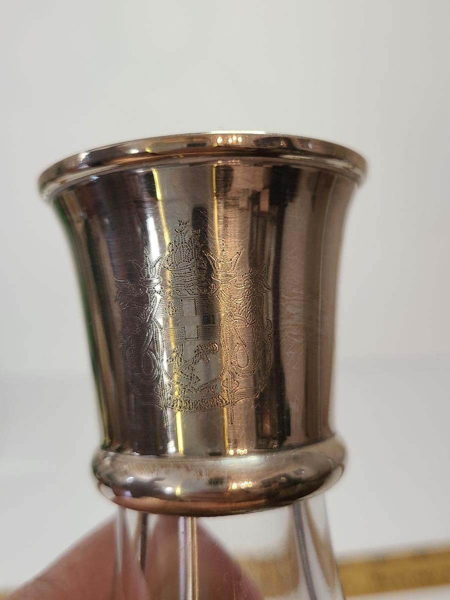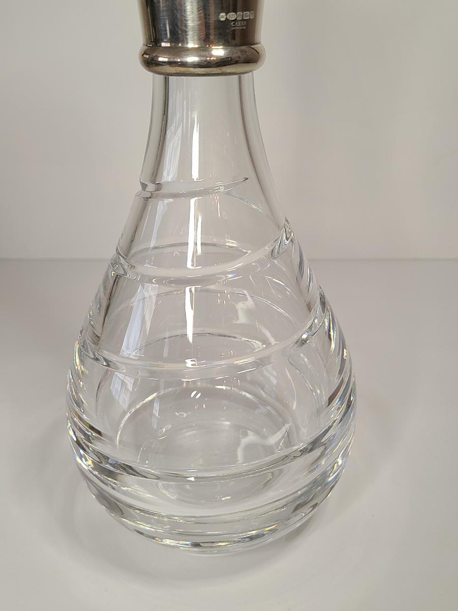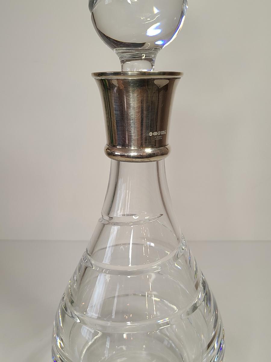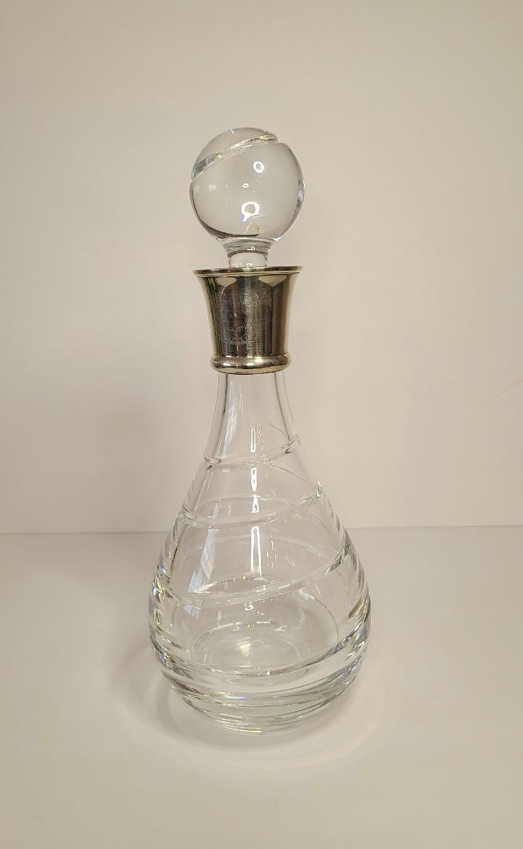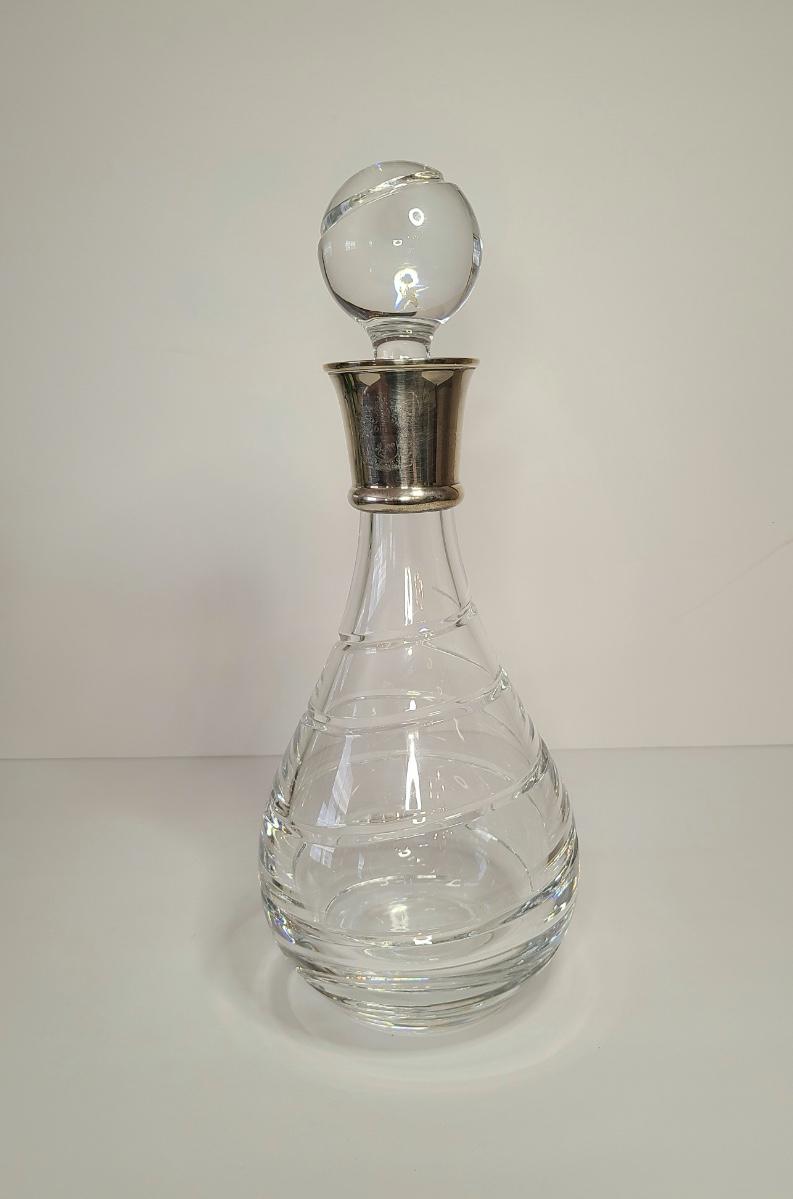 Lot 134: Elegant Carrs Sterling Silver Collared Spiral Cut Decanter ($450)
