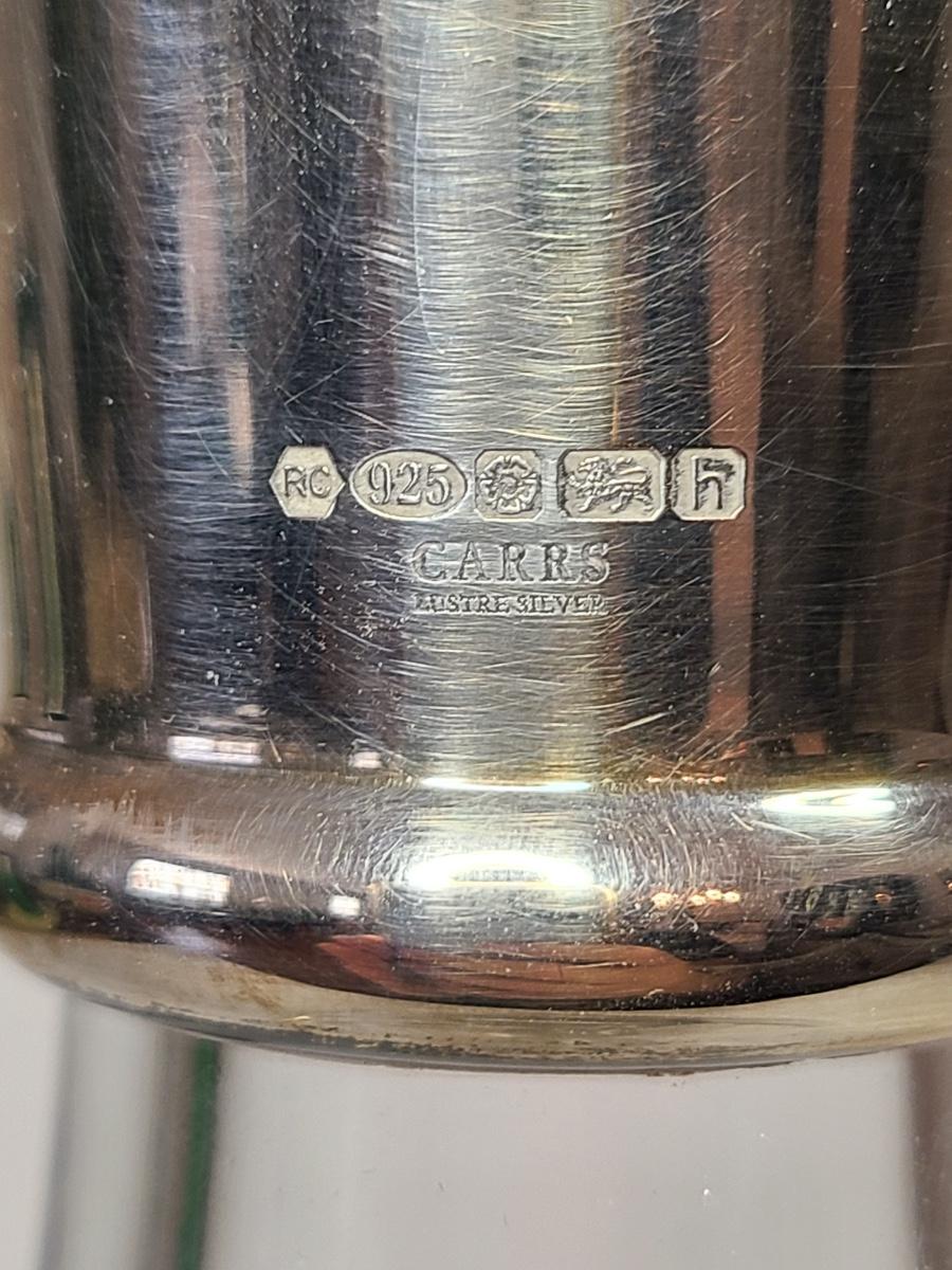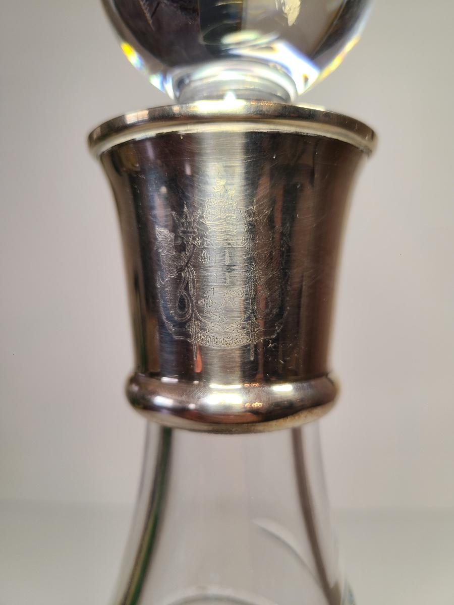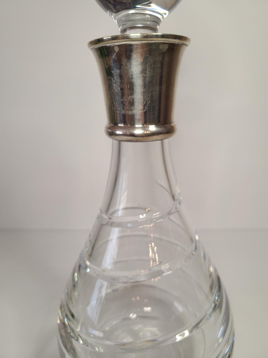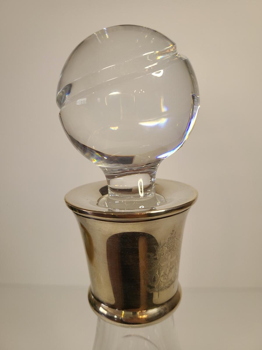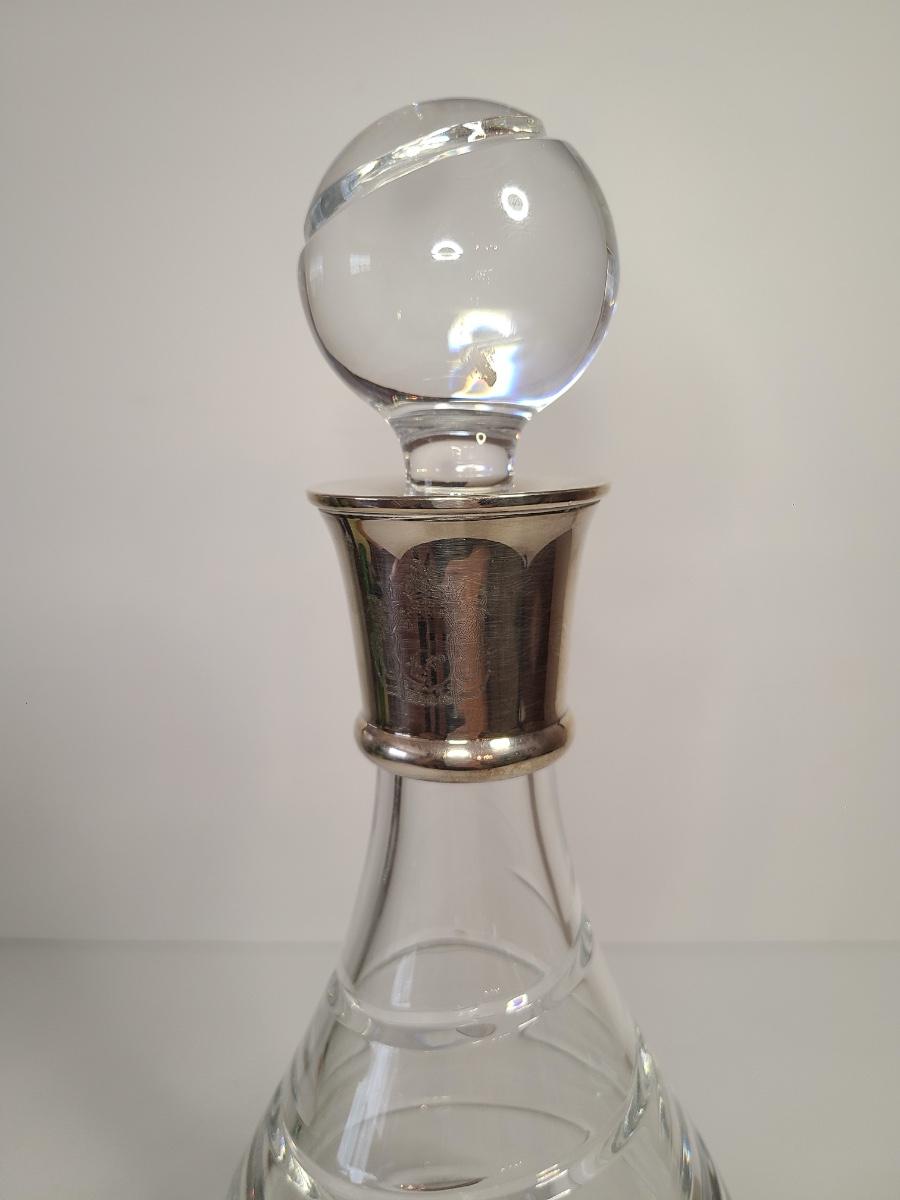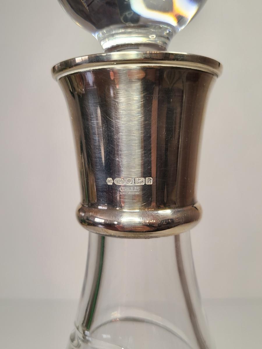 Lot 134: Elegant Carrs Sterling Silver Collared Spiral Cut Decanter ($450)