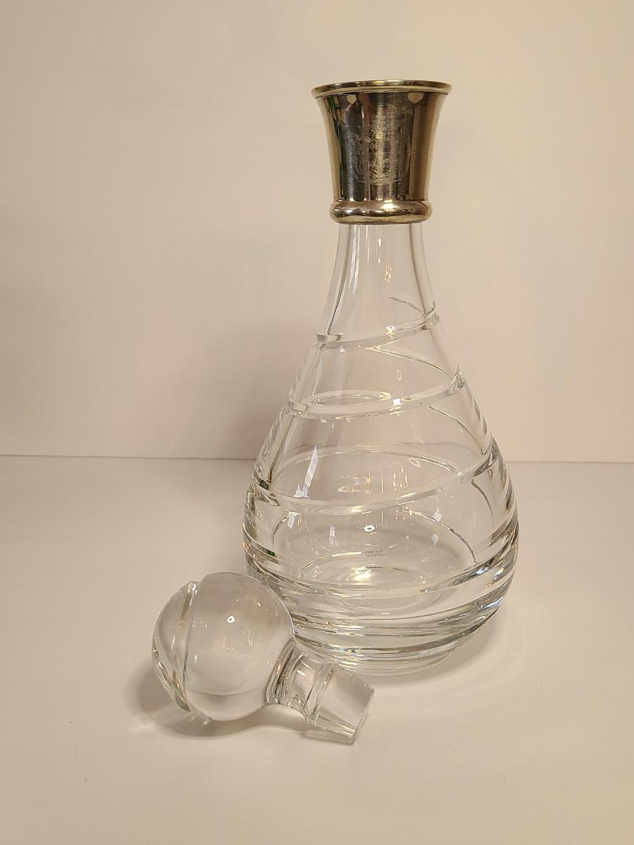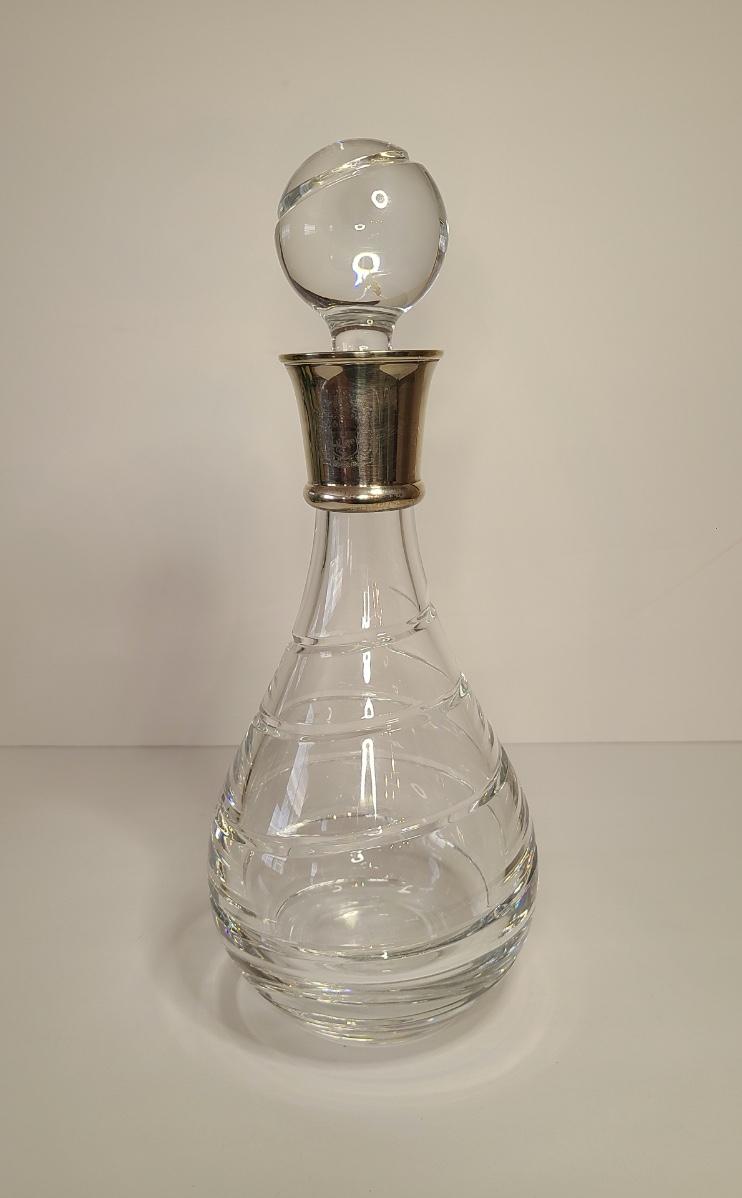 This piece is gorgeous and can be used as a wine decanter or whatever it is you fancy. The collar is sterling silver with Carr's , 925 markings, and British hallmarks. This is not new, but close. It has sleek lines, and the crystal is sparkling. Can be found on the Carrs website for over $450 retail. No box included. Please see all pictures as they are the best representation of the items. The pictures show condition, measurements if taken, and what is included in the lot. Due to the large amount that we photograph and the time frame, we are not always able to take measurements. All items unless noted, are pre-owned and have been used. If you purchased furniture, you must bring help. We do not allow one person to carry large furniture out on their own. Bring help, tools and a truck for the safety of our client’s homes, and your personal safety. Any damages that result to the property including walls, and floors due to moving of the furniture will be charged to the buyer. Company policy. Thank you.