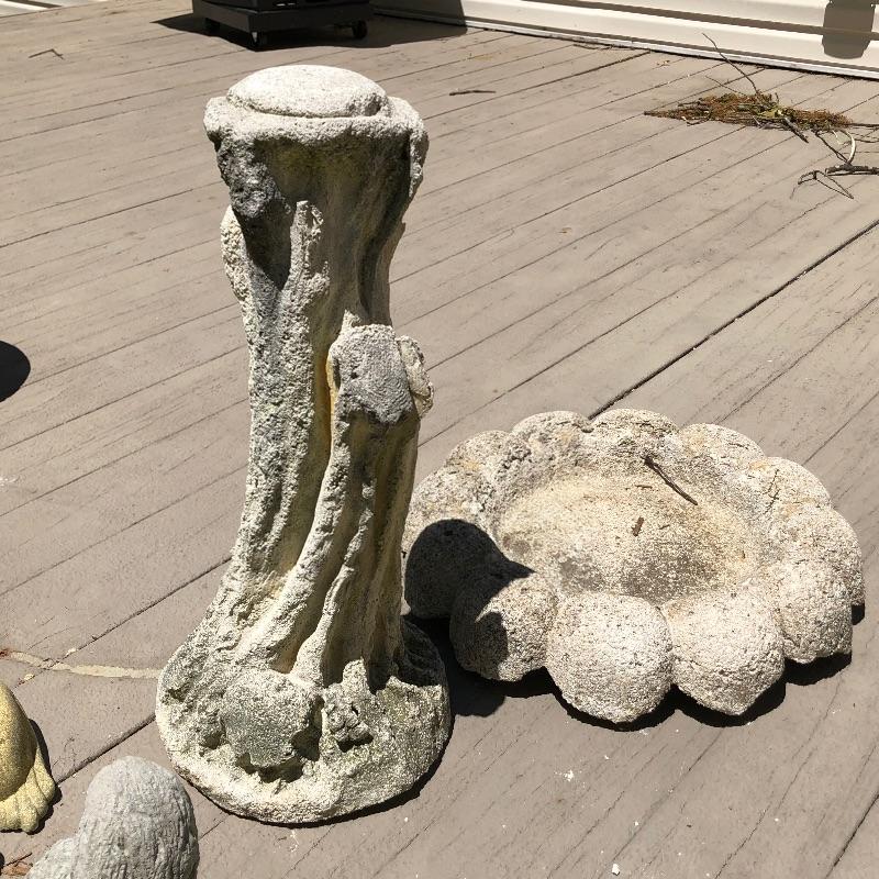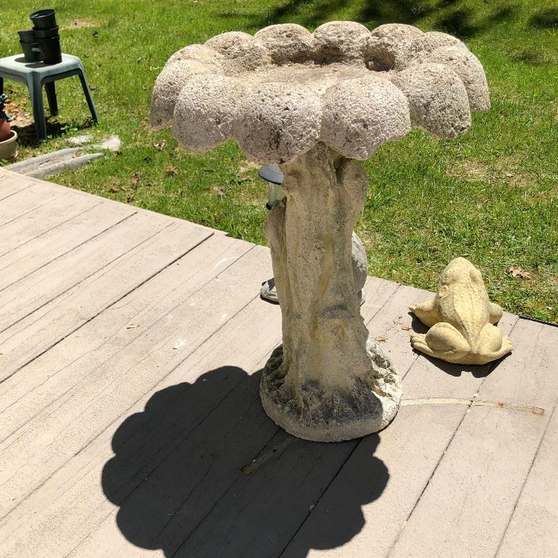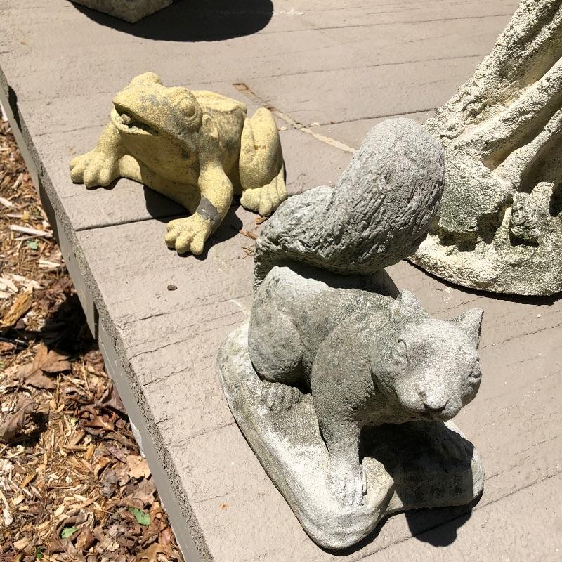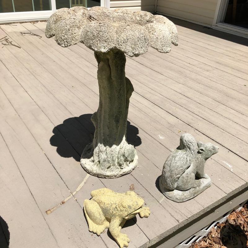 Add some still life and wildlife to your back porch with these two cute critters. We have added in a cement birdbath along with the squirrel and frog so that you can provide for your feathered friends.