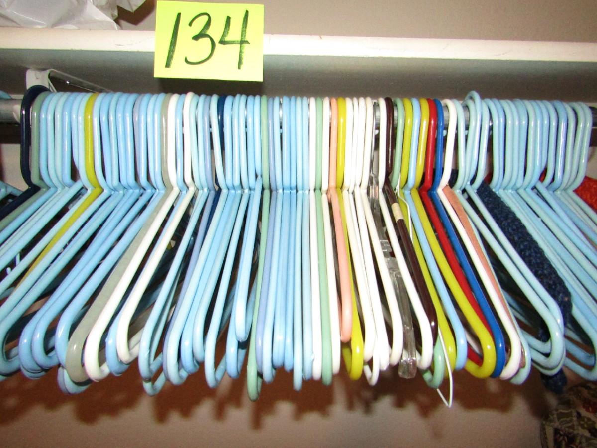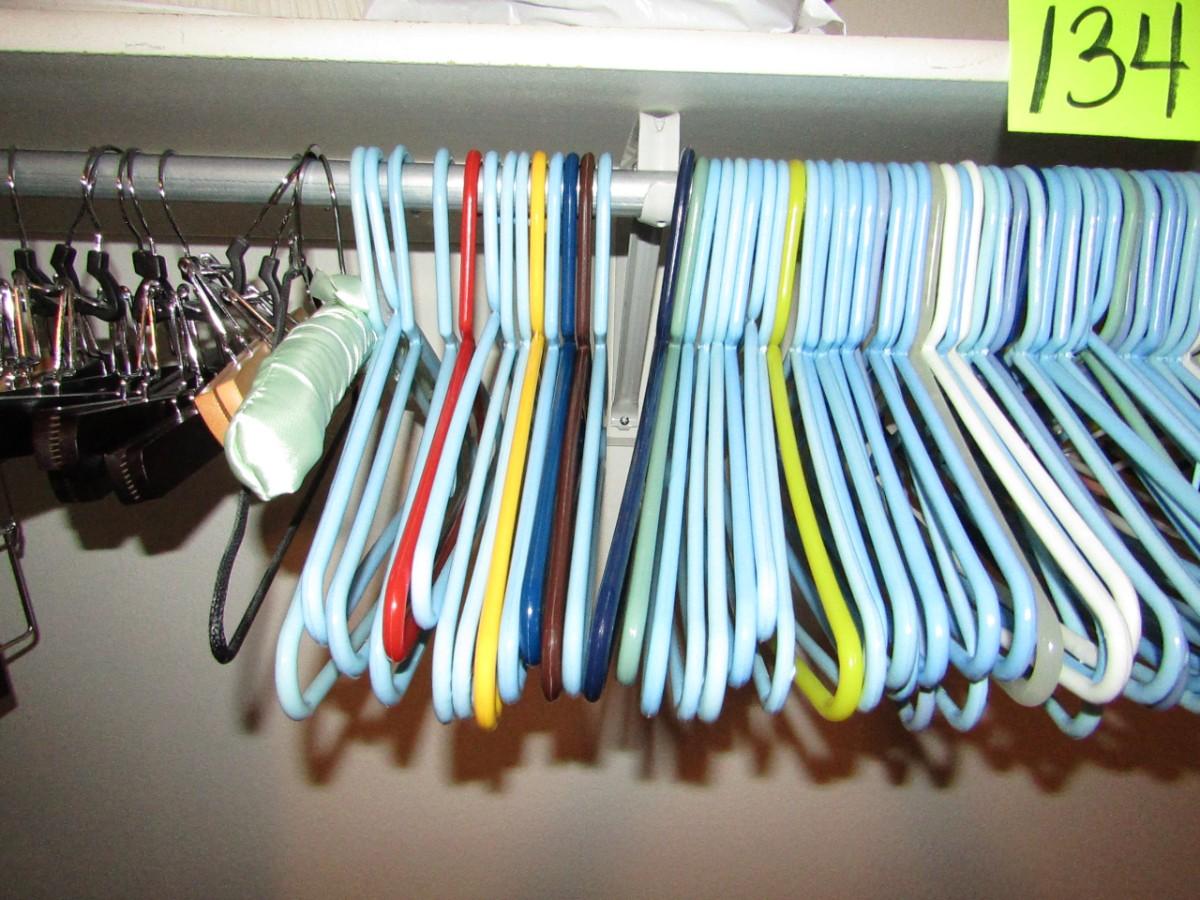 MANY PLASTIC AND METAL CLIP CLOTHES HANGERS
