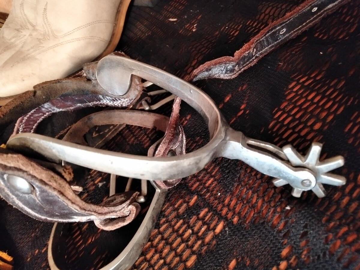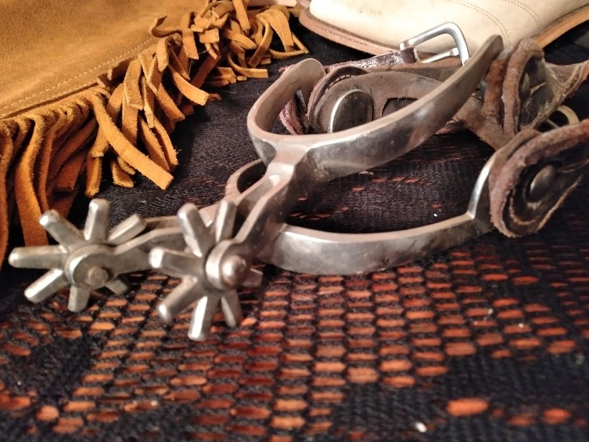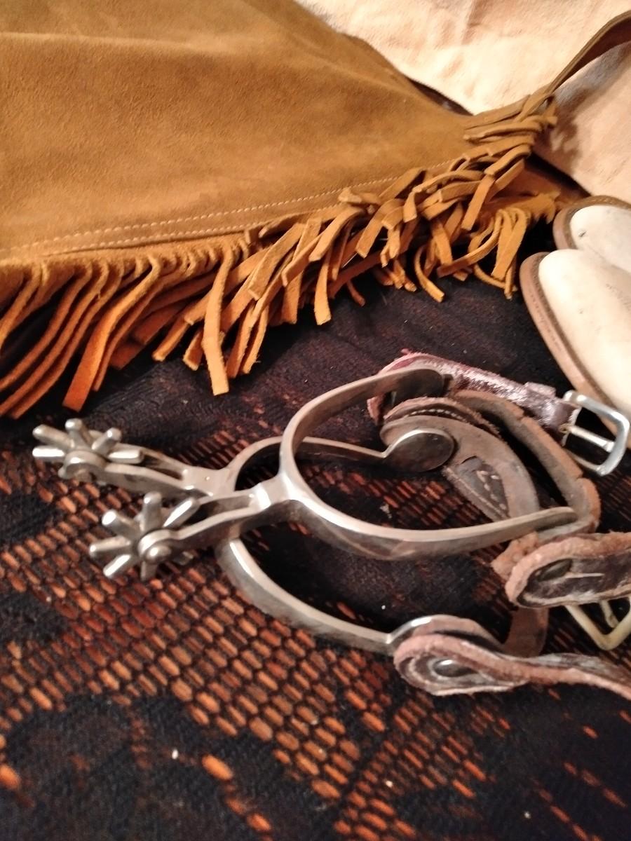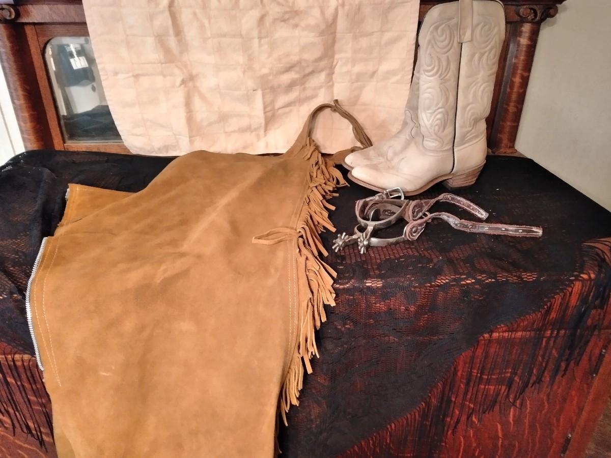 LOT 134 COWBOY GEAR CHAPS, SPURS, BOOTS