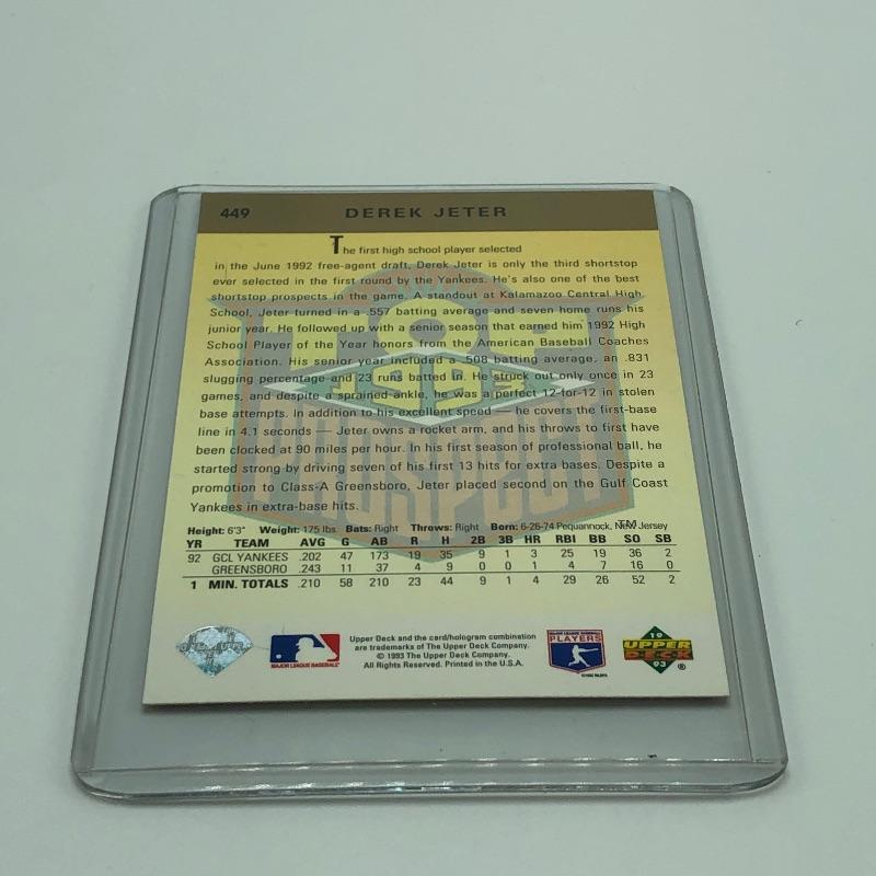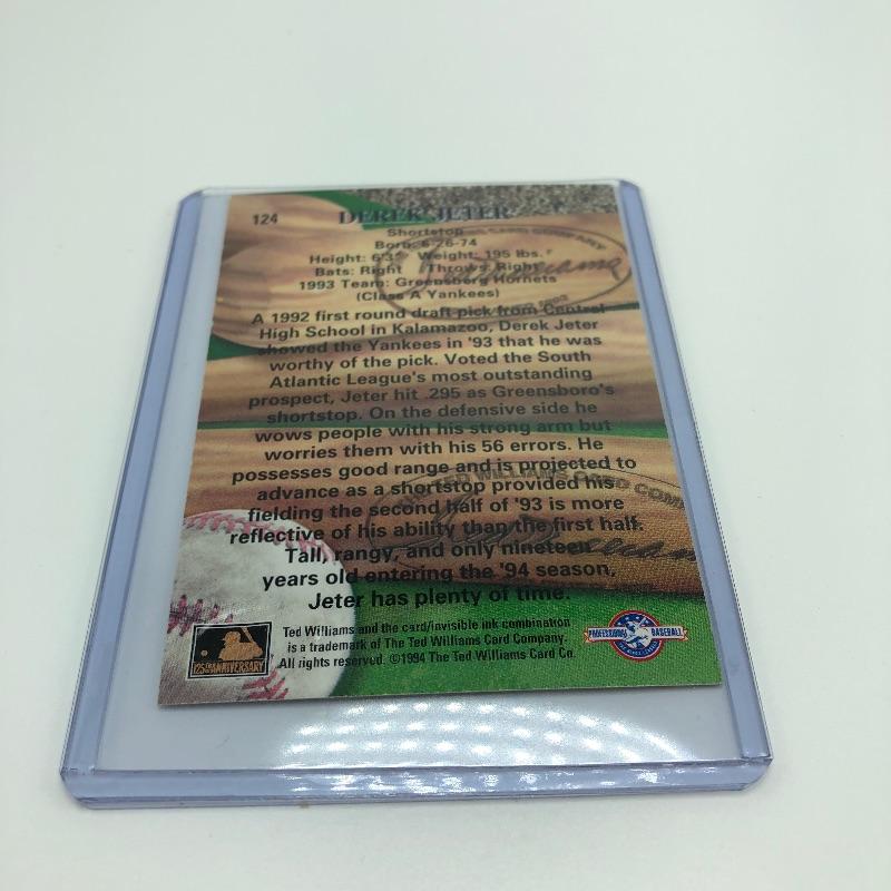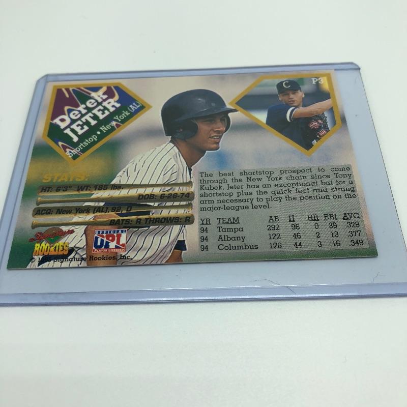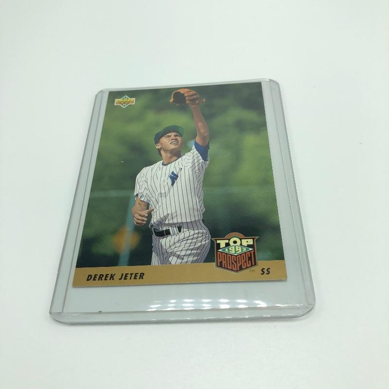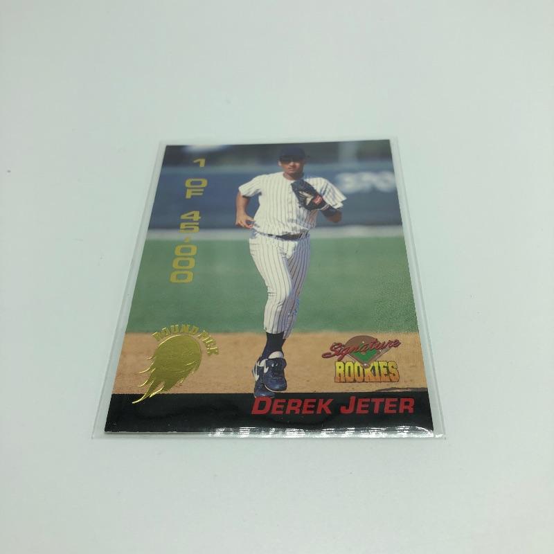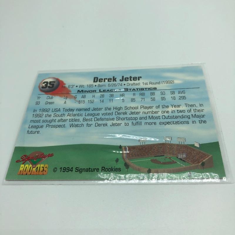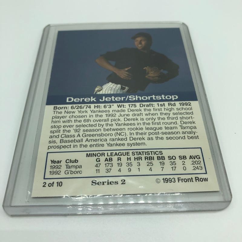 This is a collection of trading cards of Derek Jeter. It includes a 100 card set of front row 1992 baseball draft picks, with a very young Derek Jeter #55. And four 1992 Classic Derek Jeter Four Sport Draft Picks .