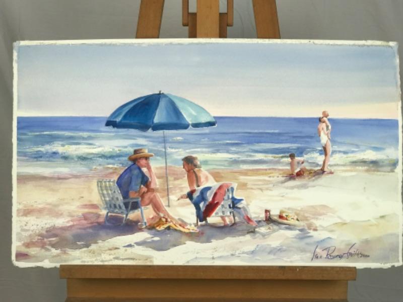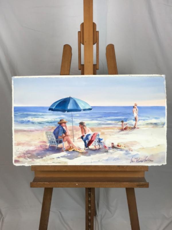 Jean Ranney Smith signed original watercolor painting “Beach Day” measures 30”x18”