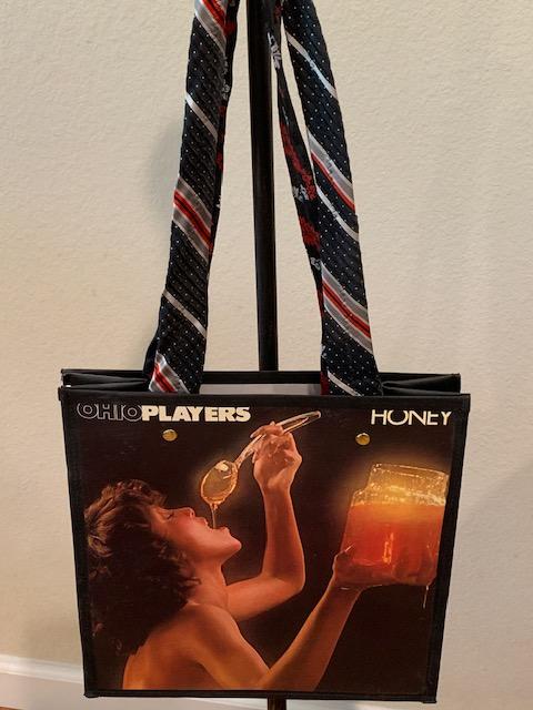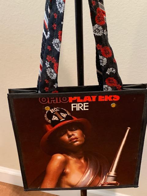 Vintage Karin's Kitsch purse with Ohio Players Record Album covers for "Honey" and "Fire".