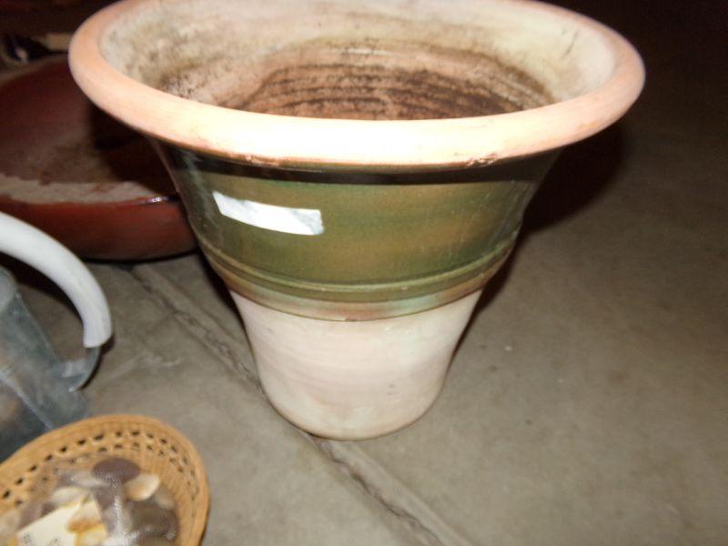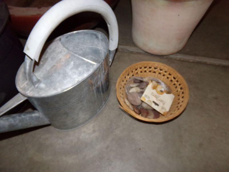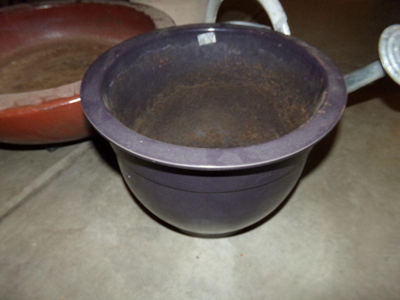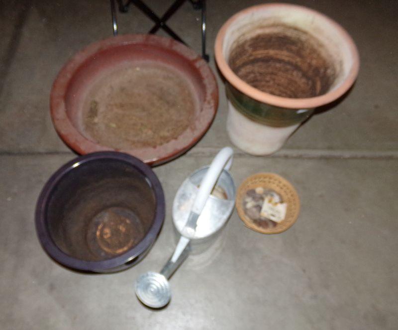 3 LARGER FLOWER POTS AND METAL WATERING CAN