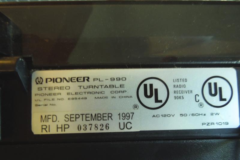 Turntable manufactured Sept 1997. Model PL-990. Belt driven. Needs cleaning. Very few scratches on cover. Universal stylus cartridge connection.