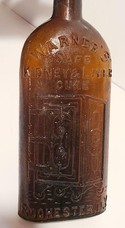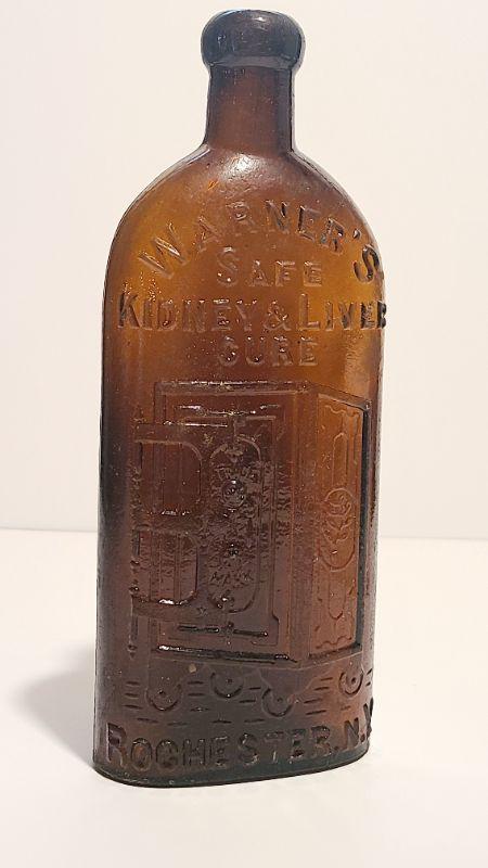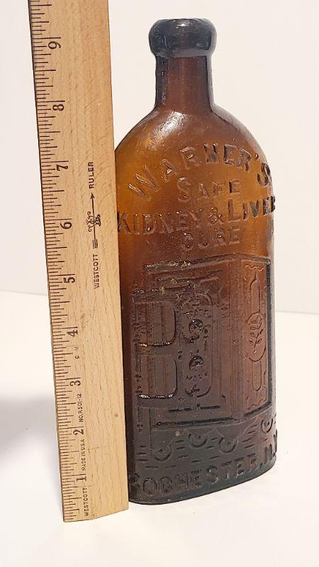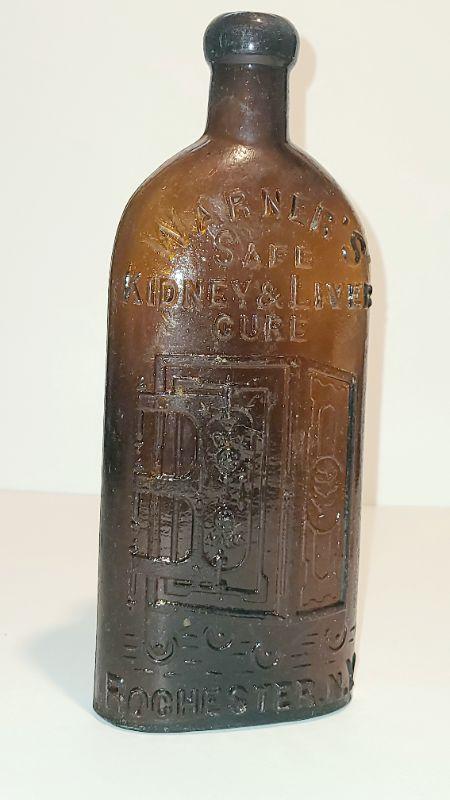 This is a rare left-sided Warners Safe Kidney and Liver Care bottle from Rochester NY. This bottle does show its age, but is a unique and hard to find bottle. Please see all pictures for condition as they are the best representation of the item.
