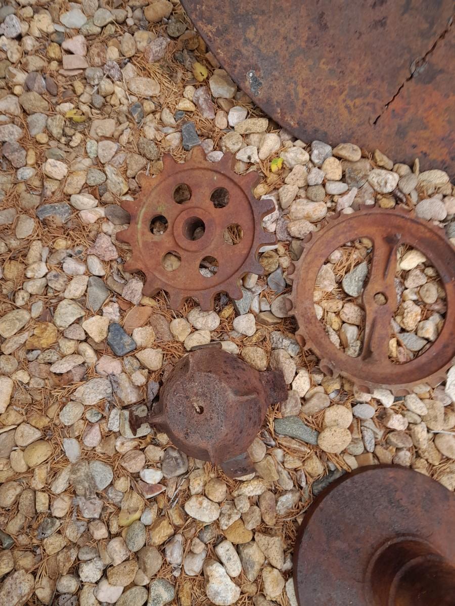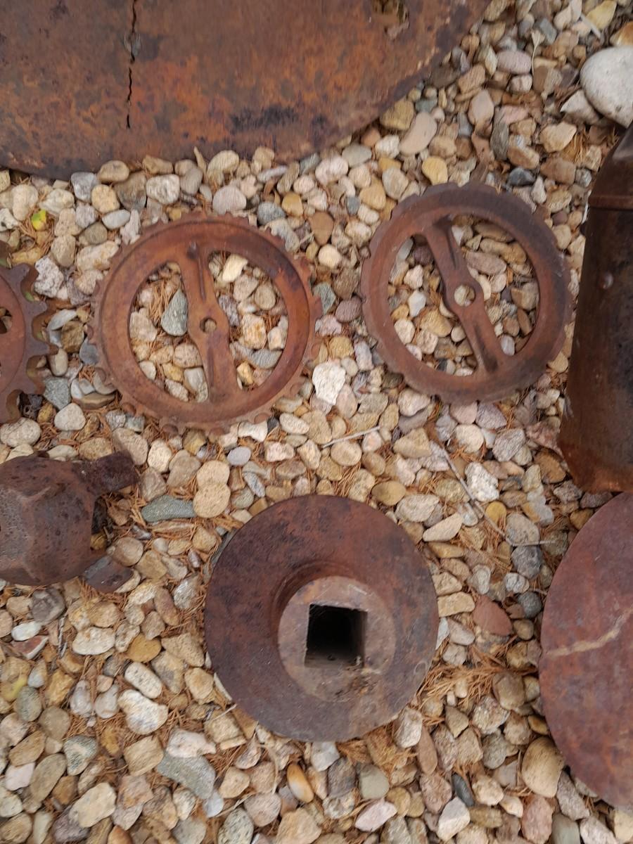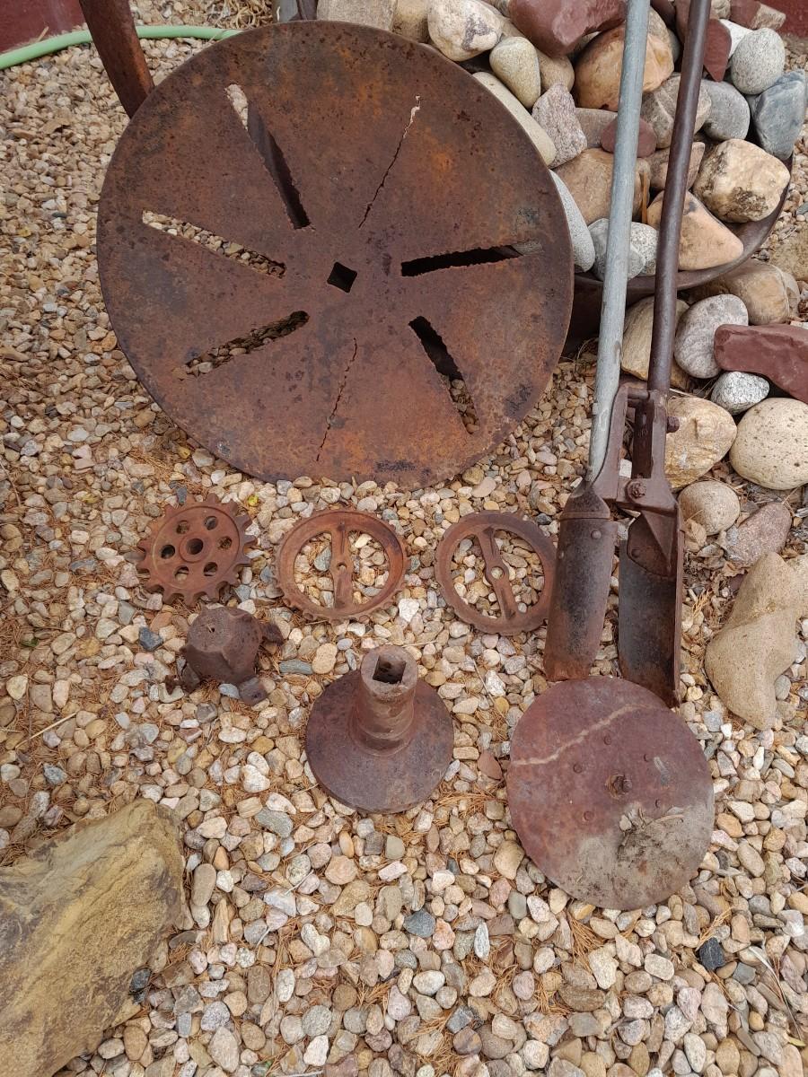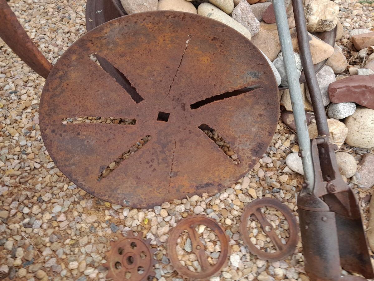 RUSTY FARM GEARS AND TOOLS FOR YARD / GARDEN ART