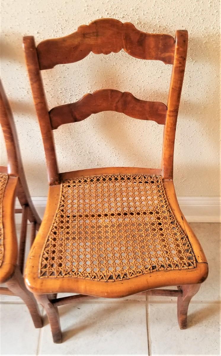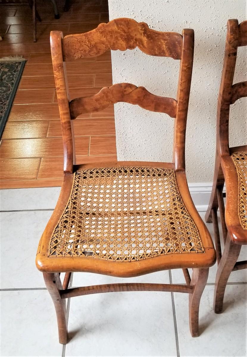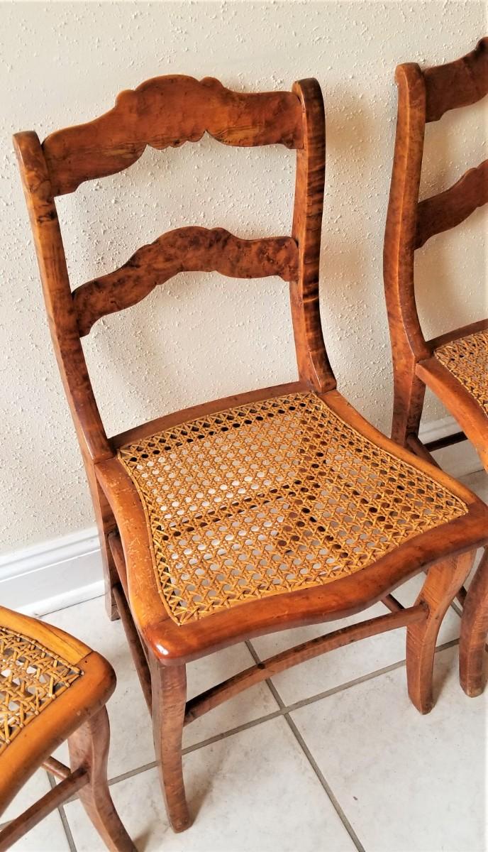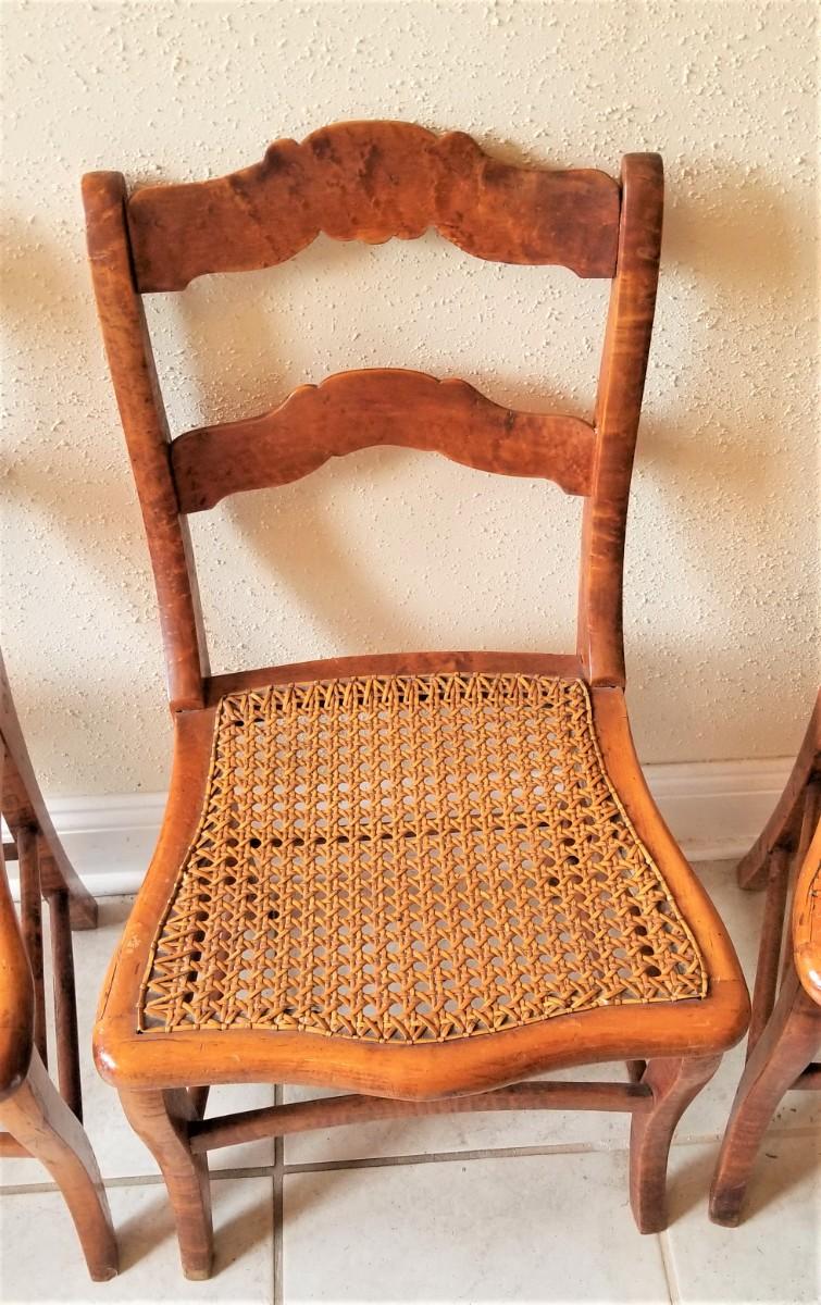 Lot #134 Set of 4 Bird's Eye Maple Caned chairs