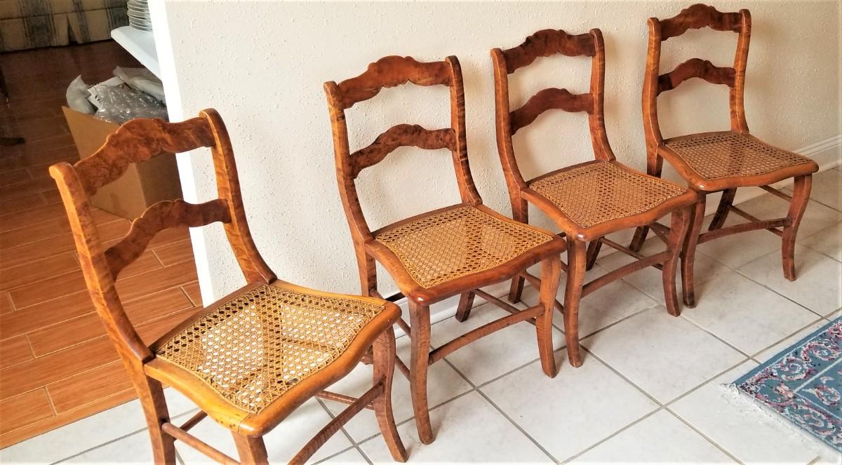 Lot #134  Set of 4 Bird's Eye Maple Caned chairs