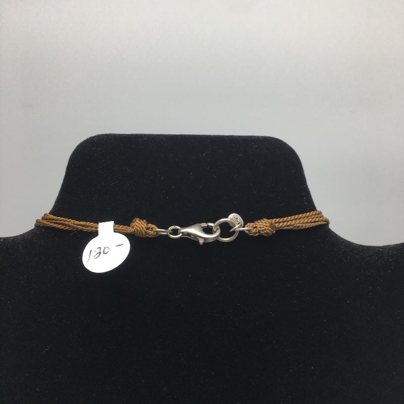 Pair of Silpada necklaces include a citrine and sterling silver nugget necklace with a toggle clasp that measures 18” long and brown silk necklace with blue-green glass, fluorite, green tourmalinated quartz, prehnite, brass, sterling silver and a large faceted green glass and sterling silver pendant that measures 18” long.