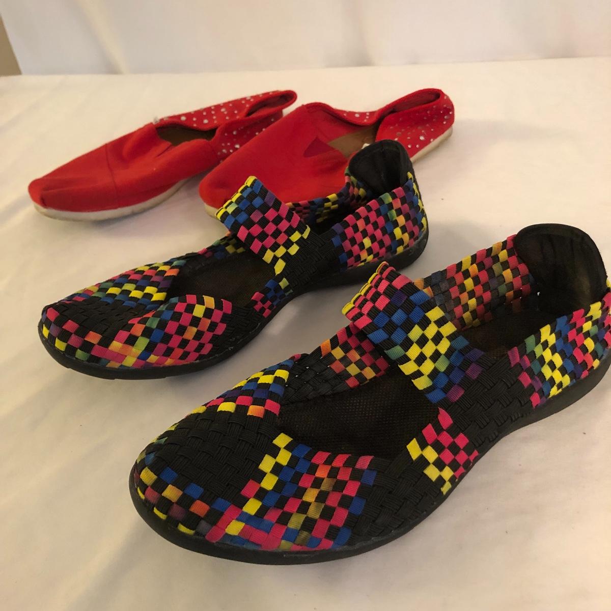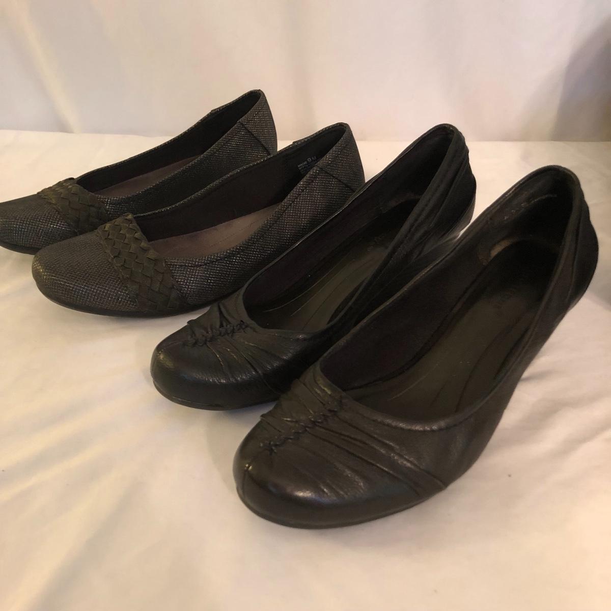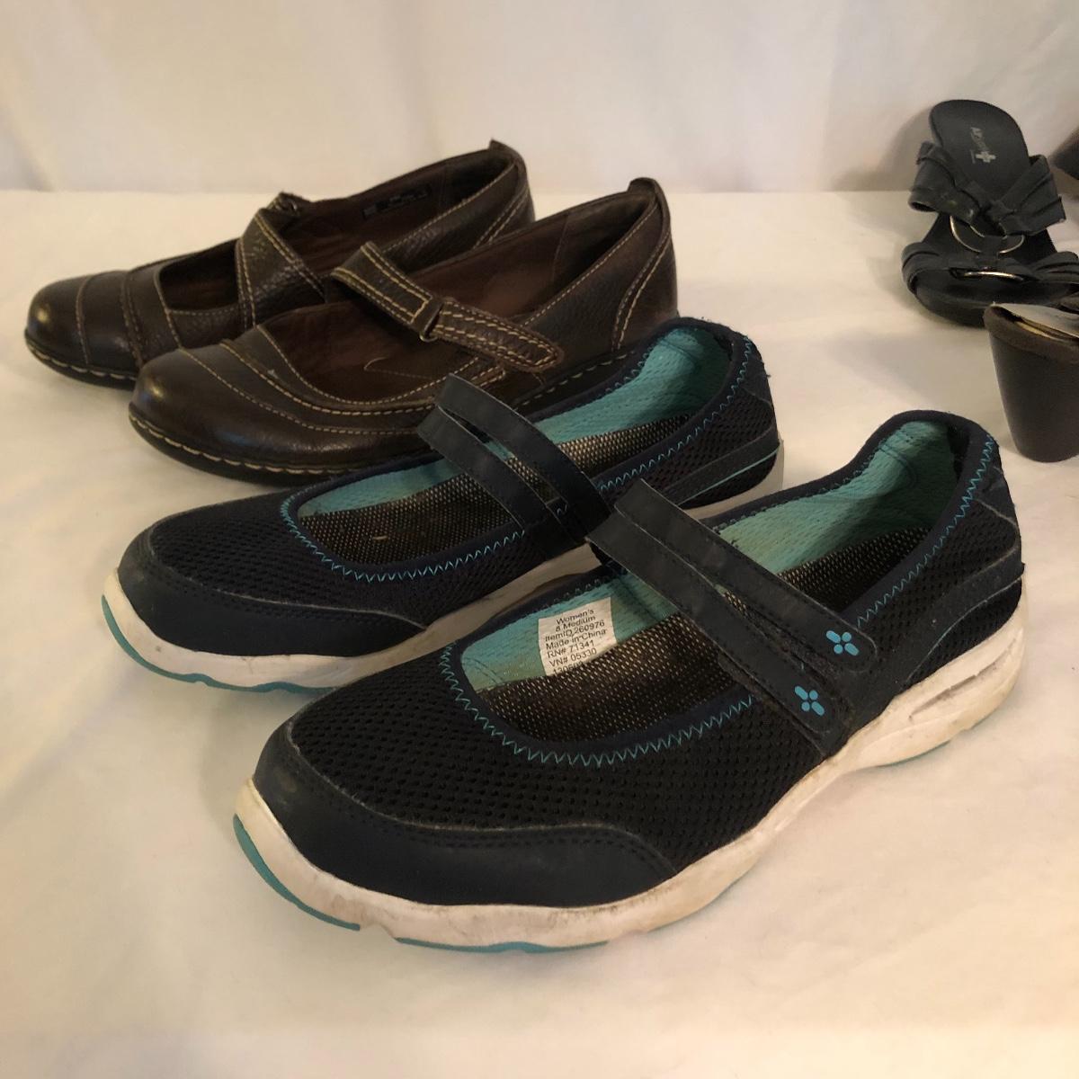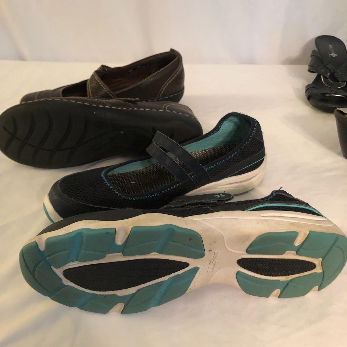 One can never have enough shoes right, and if you wear size 9 you are in luck here as there are 13 pairs! Great brand names that include Sketchers, Clark’s, Born and more. Mostly casual flats but with a few heels as well. All are in good condition with lots of wear left in them; pair in last image are quite dirty but we threw them in anyway as they may clean up nicely.