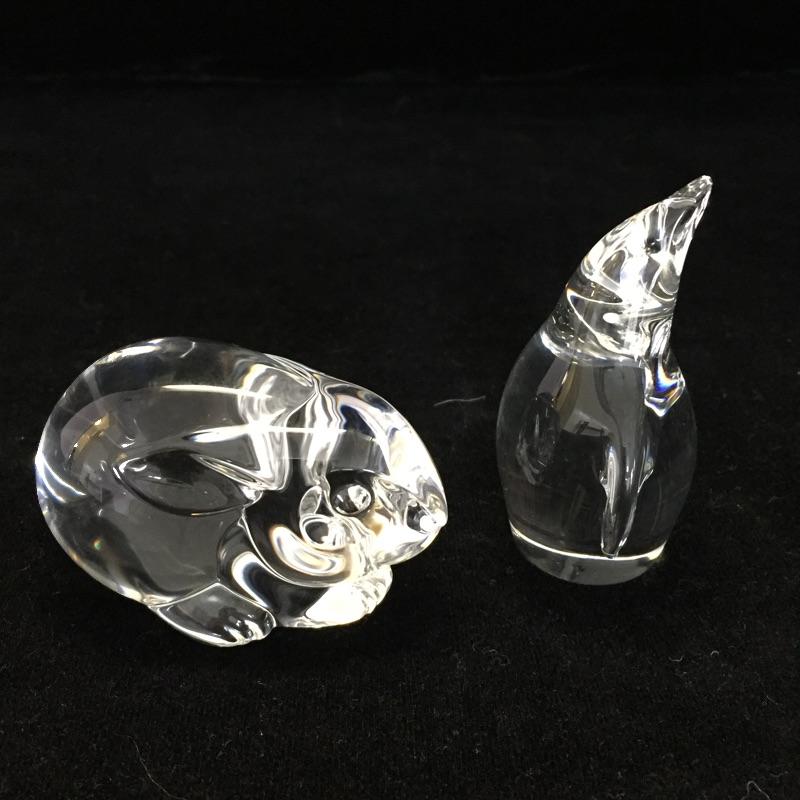 Precious pair of Steuben glass animals that includes a rabbit and a penguin.