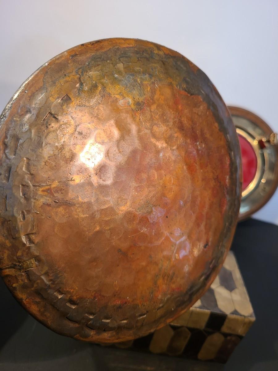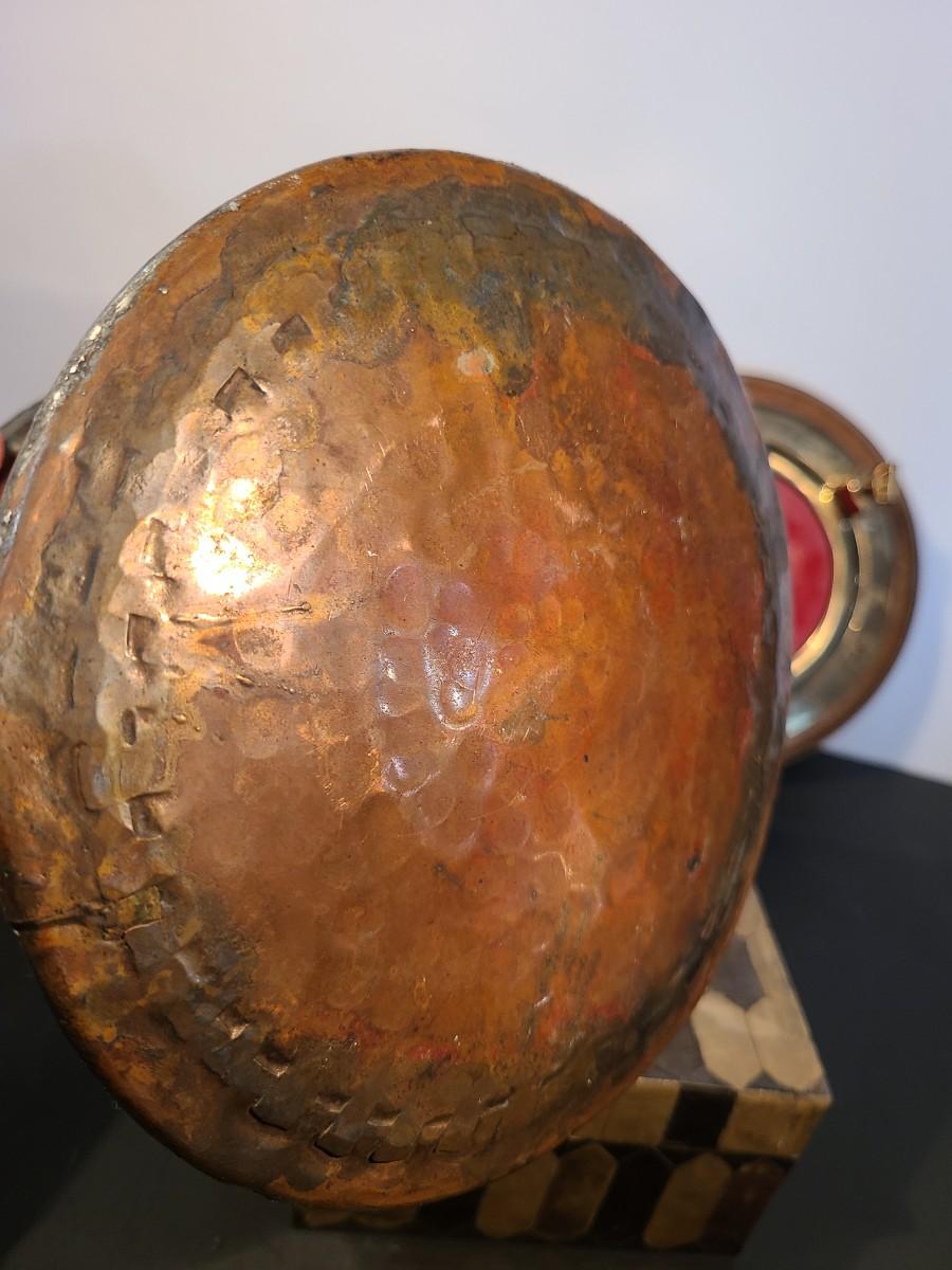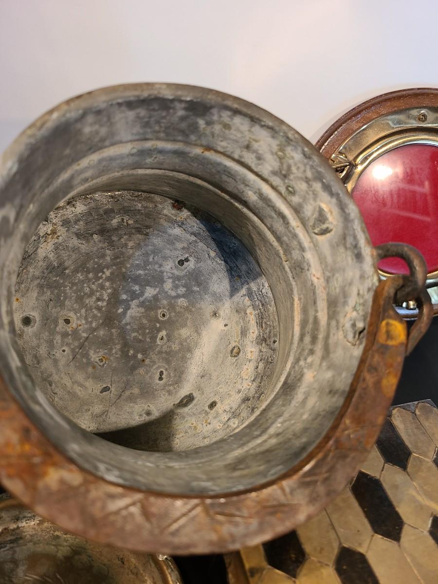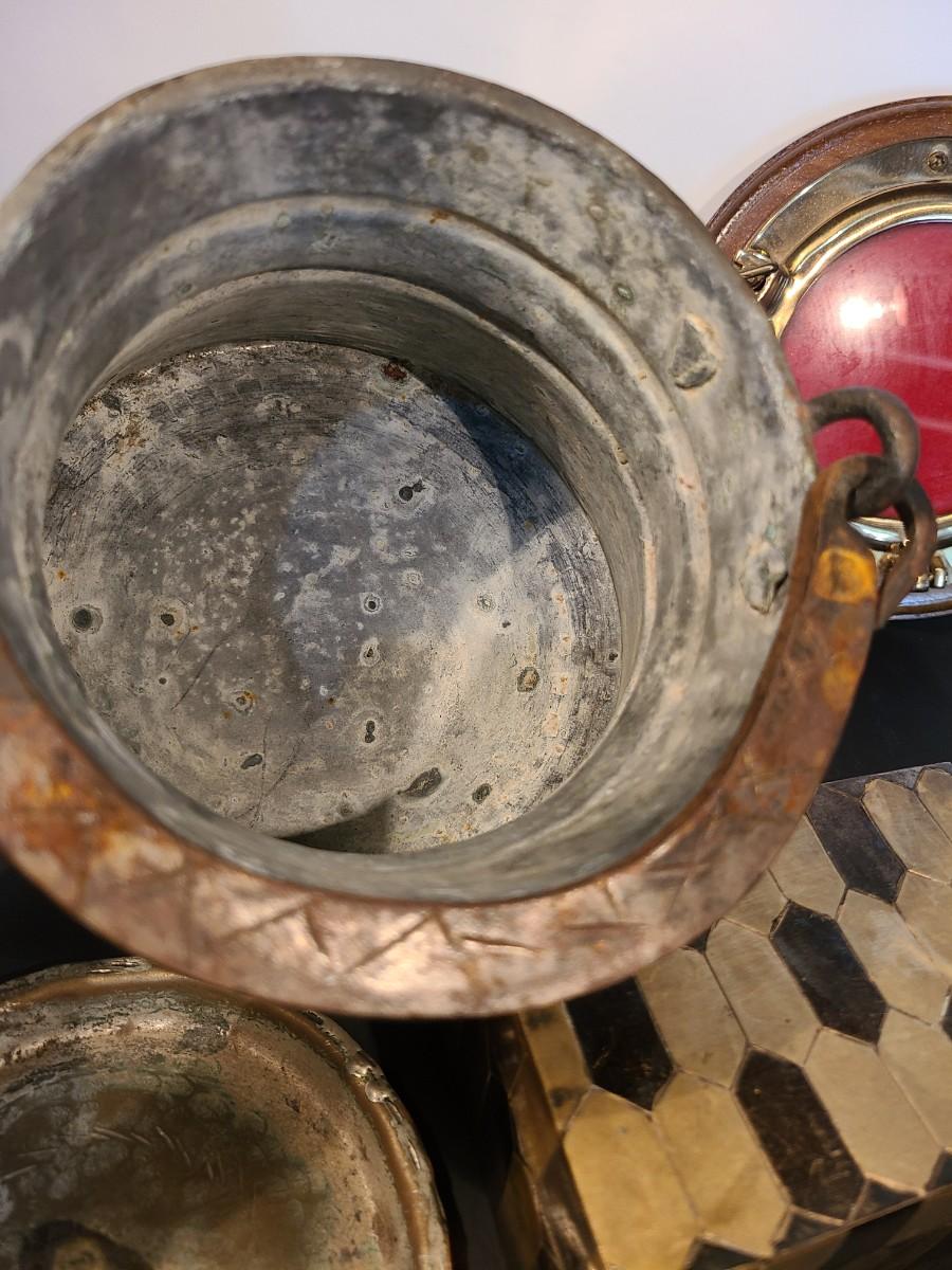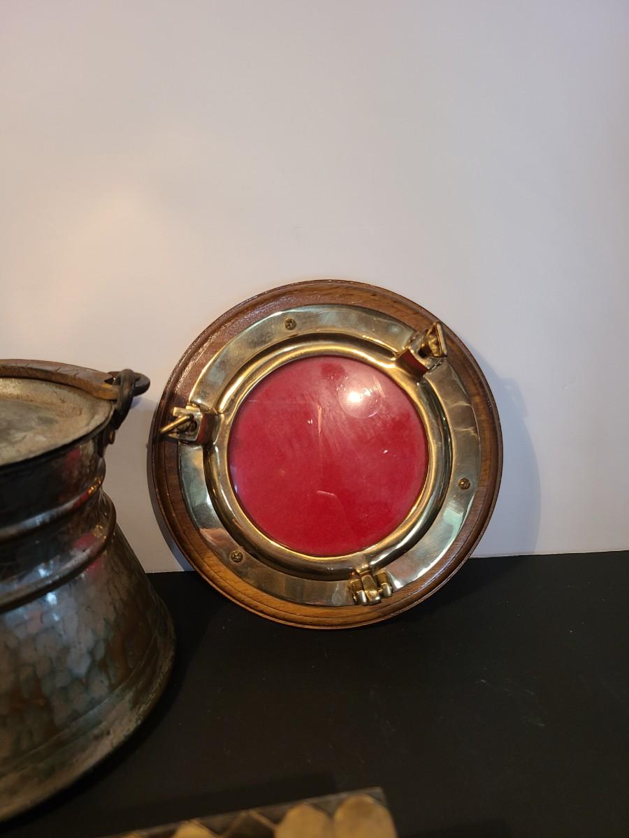Lot 134: Vintage Dove Tailed Hammered Pot, Metal Box, and Porthole Picture Frame.