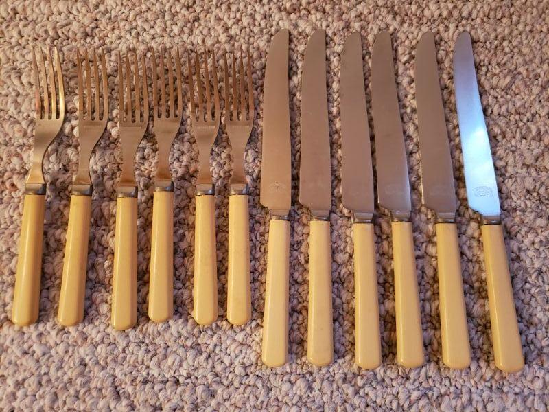 Lot 134: Vintage Lamson Goodnerâ„¢ Faux Ivory Forks & Knives