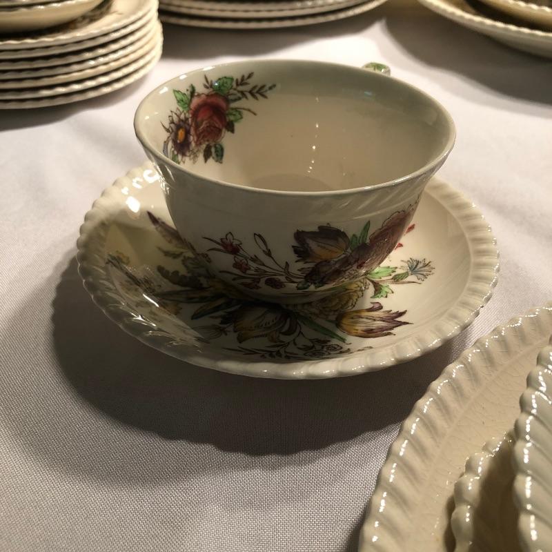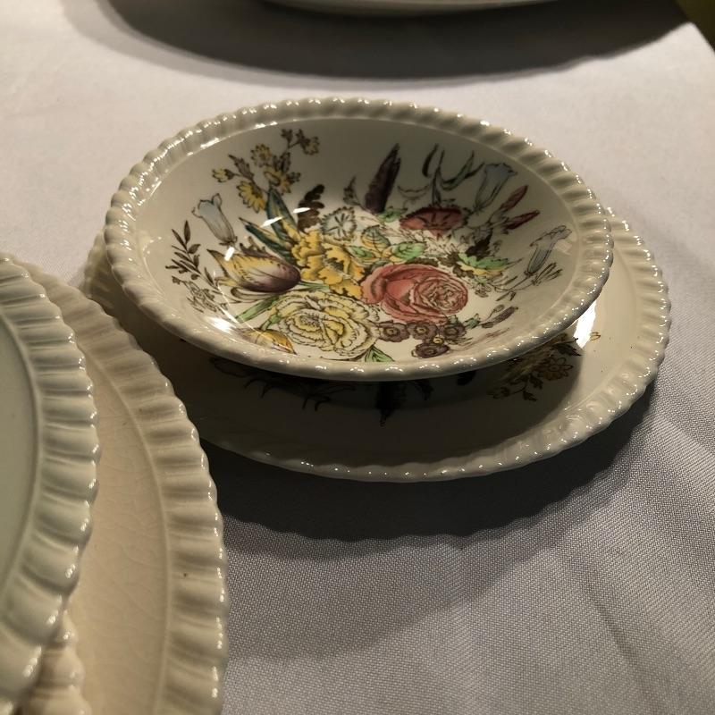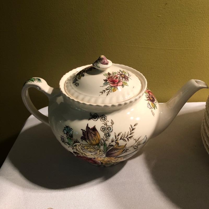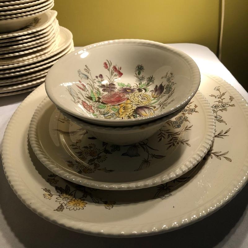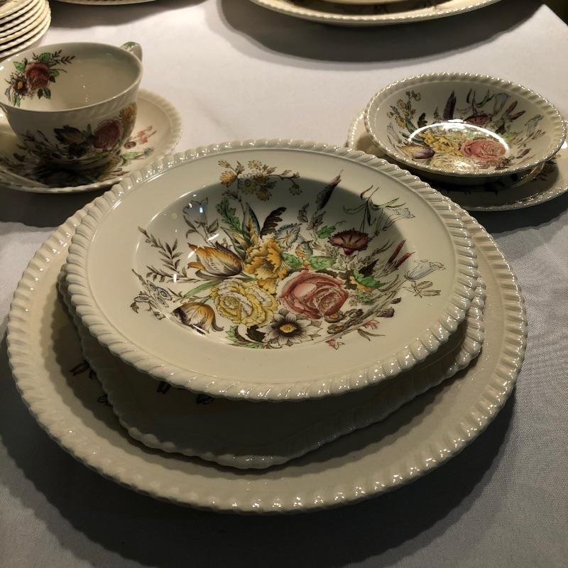 Beautiful Windsor Ware “Garden Bouquet” china set. This lot includes teacups, teapot, sugar bowl with lid, dinner plates (10”), salad plates, soup bowls, dessert plates, tea saucers, appetizer plates, servings bowls, small serving platter and large serving platter (16”). There are 67 total pieces. 8 place settings with extra dessert plate and teacup. Perfect for a fancy dinner with family or friends. Very minimal stains and cracks, most pieces are in pristine shape. Shipping available.