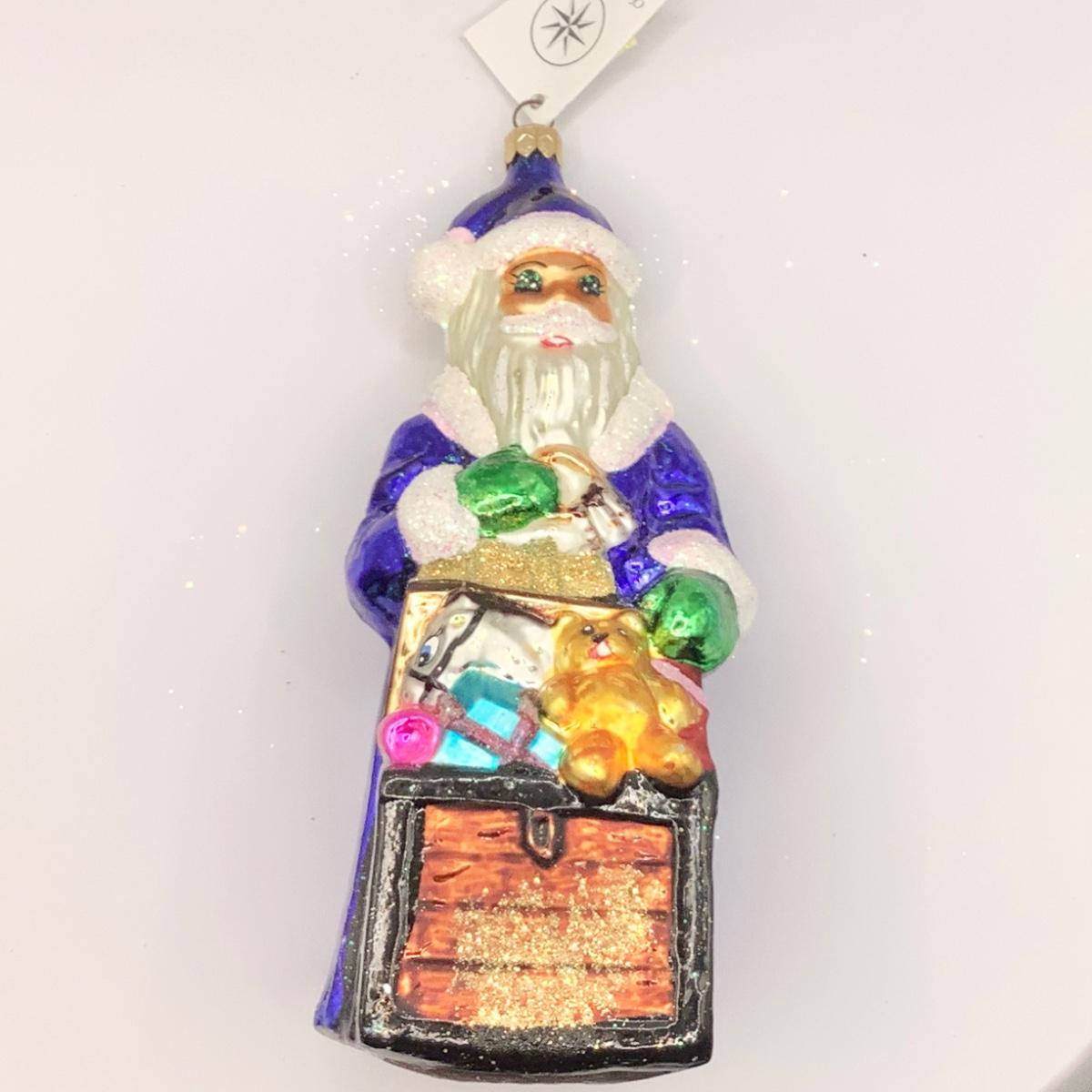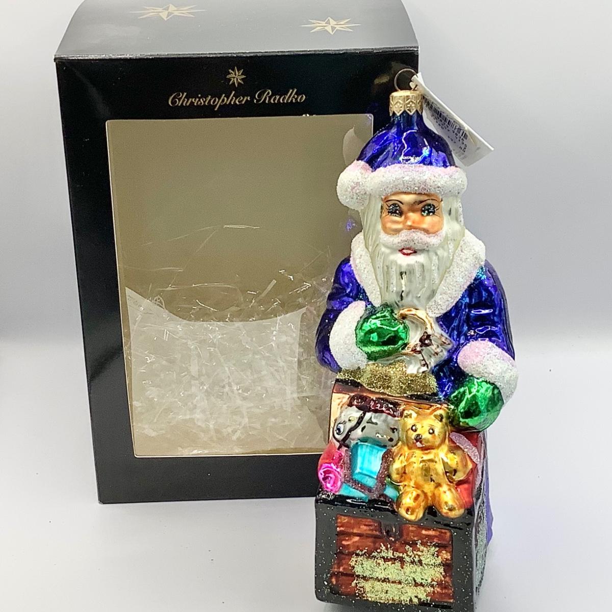 Lot 1342 Christopher Radko Glass Ornament, 1996 Santa in Blue Toy Chest  with box