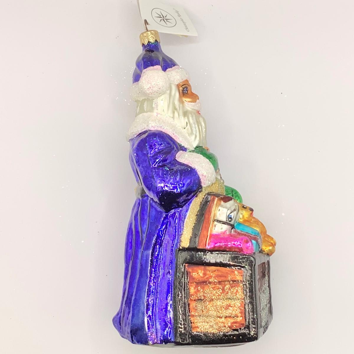 Christopher Radko Glass Ornament, 1996 Santa in Blue Toy Chest with box