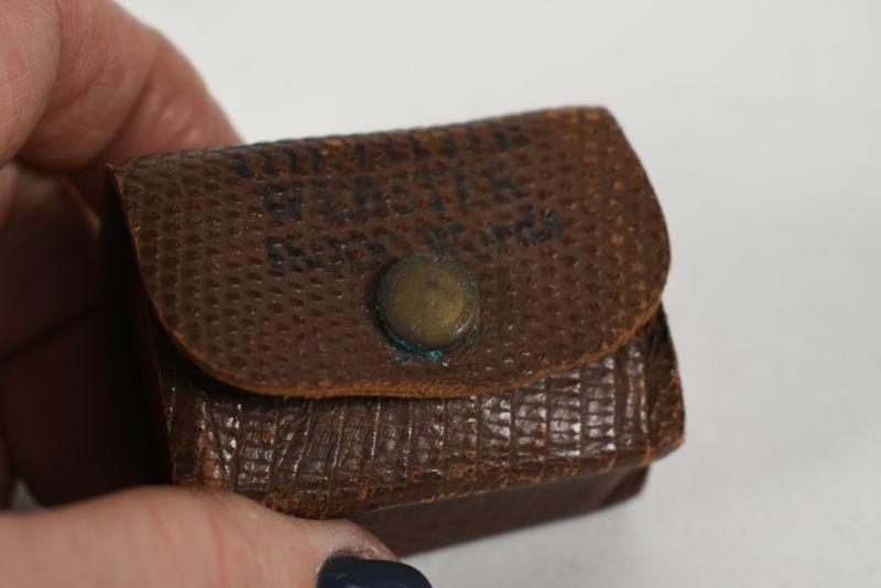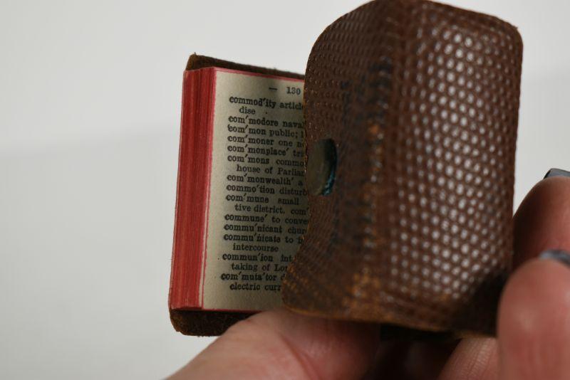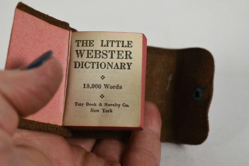 Miniature dictionary with leather cover. Very good condition for it's age. 1940**Please read Terms and Conditions before placing a bid. Pick up is Sunday, December 22 from 11am to 3pm or Monday, December 23 from 4pm-7pm in Mantua, NJ. All sales are final. All sales are as is, where is. Please review all photos. Props are not included. Measurements are approximate.