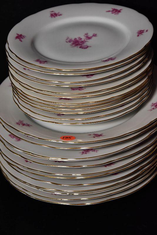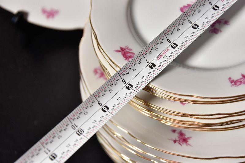 Dinner plates and salad plates. Gold rimmed. Bring paper and box for packing.
