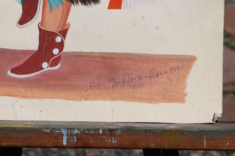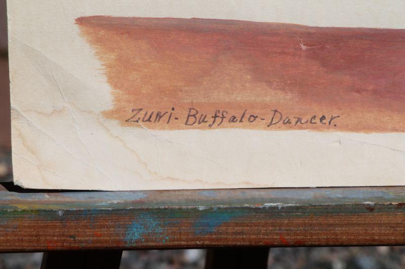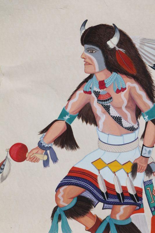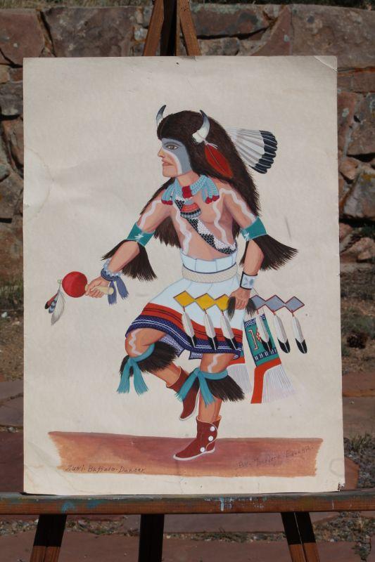 Lot #135: Vintage ZUNI BUFFALO DANCER Hand Painted Fine Art SIGNED by Theodore Edaakie {21" x 15"}