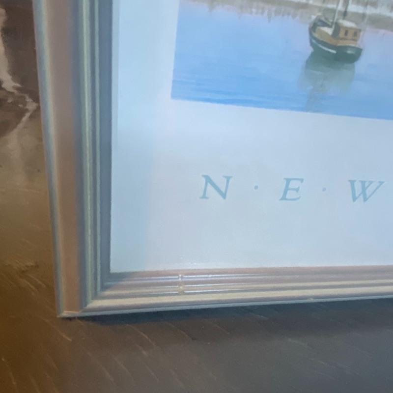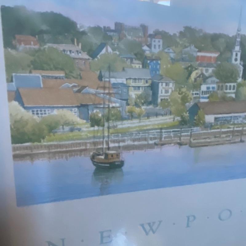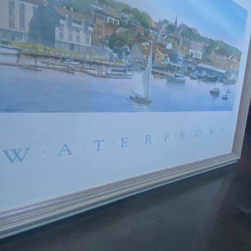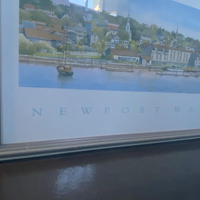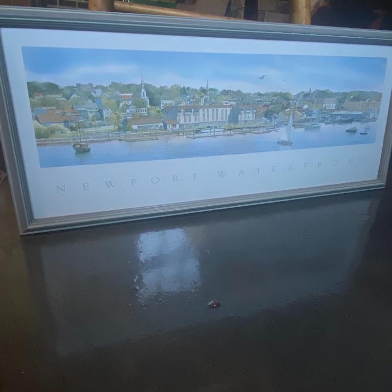 Create a cozy corner with this lot! Lot includes antique chair that measures 17 x 15 x 18. Back of the chair stands 32” tall. Lot also includes Newport Waterfront print. Grey wooden fame that measures 26.5”x11.5” encloses this refreshing print. See photos. Local pick up only.