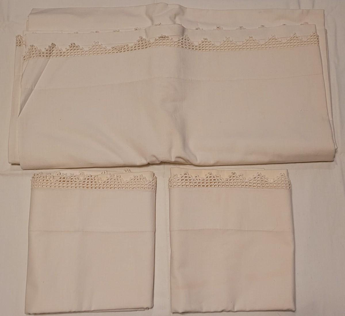 Lot 135: Vintage Matching (2) Pillowcases and Full Size Flat Sheet
