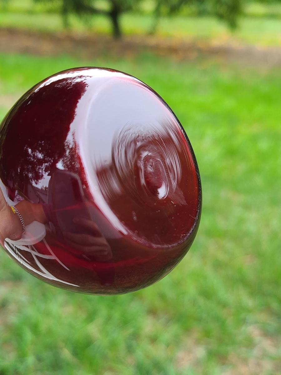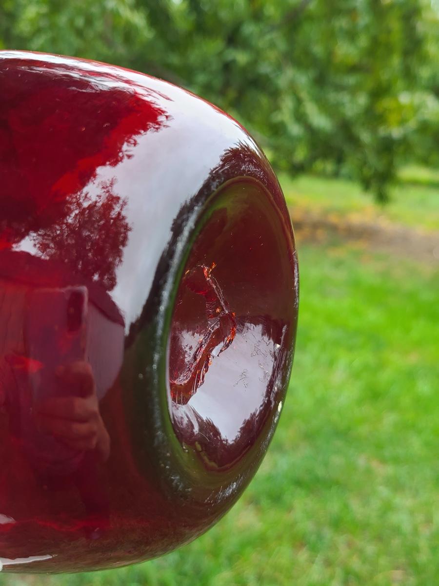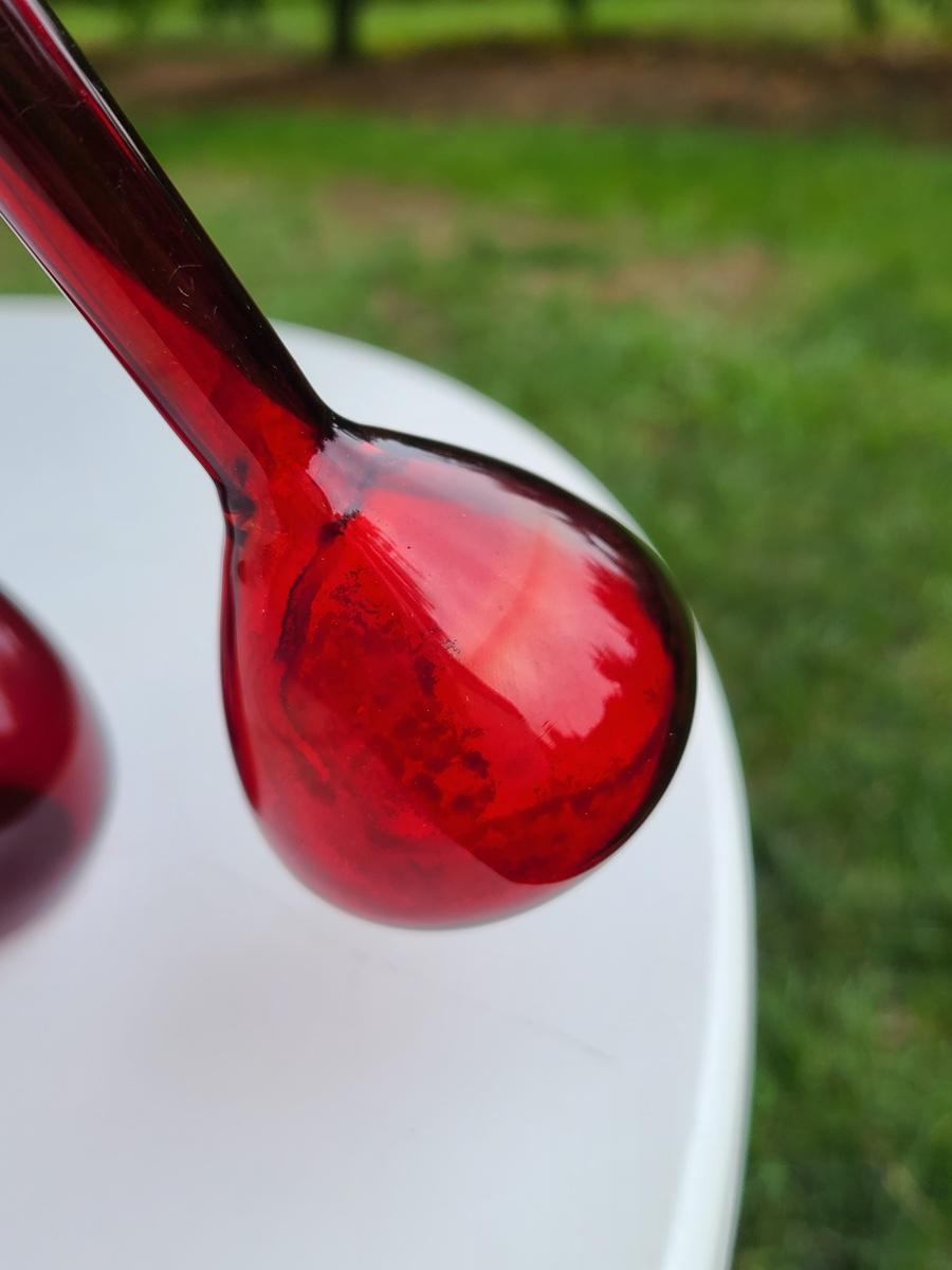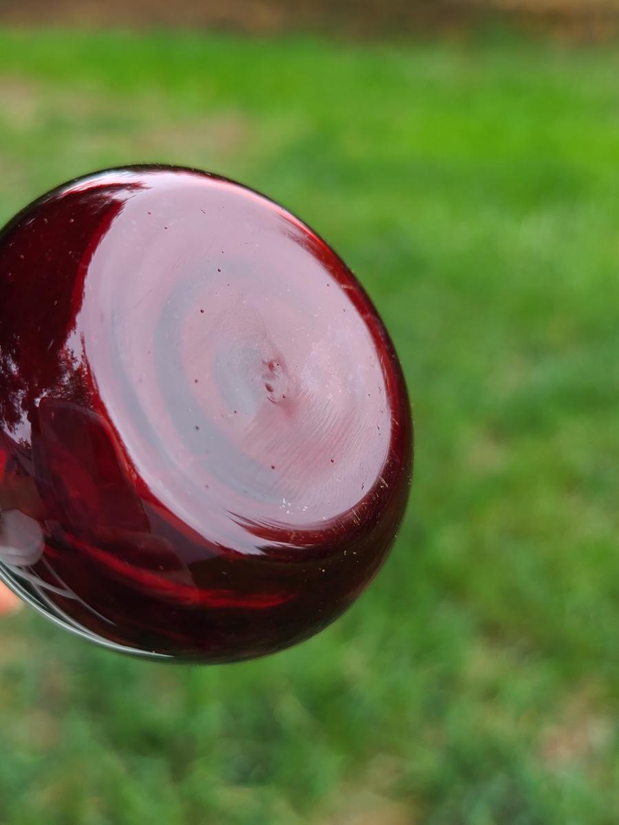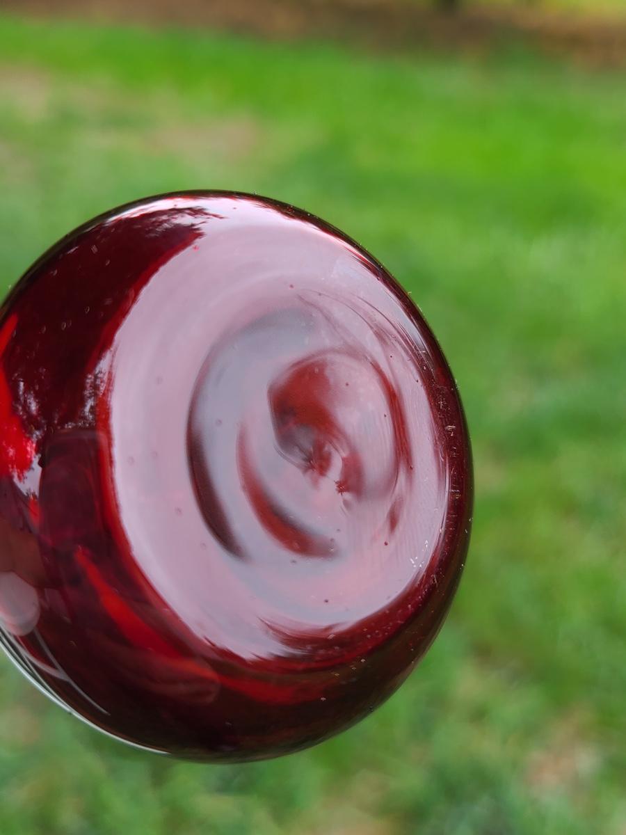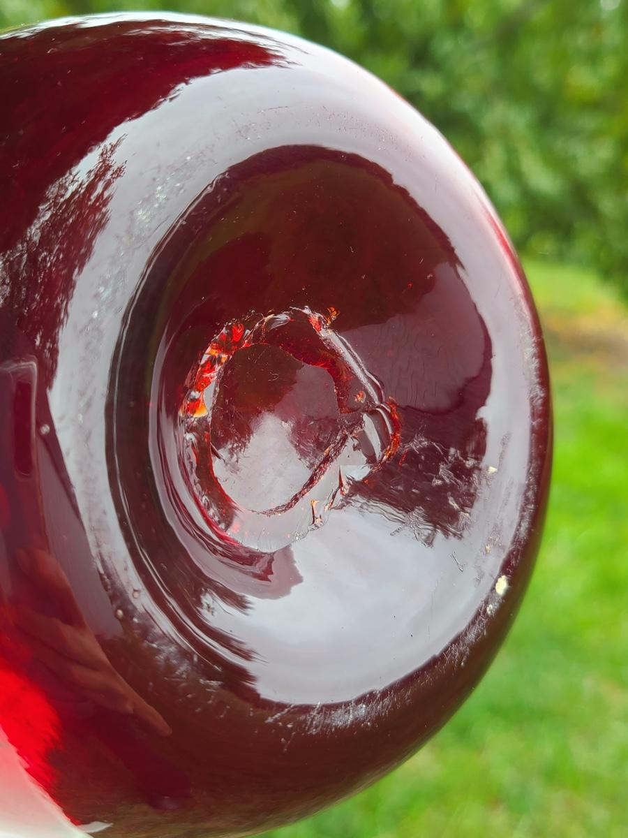 Lot 135: Antique/Vintage Ruby Red Hand Blown Glass Whiskey Pitcher and Flasks