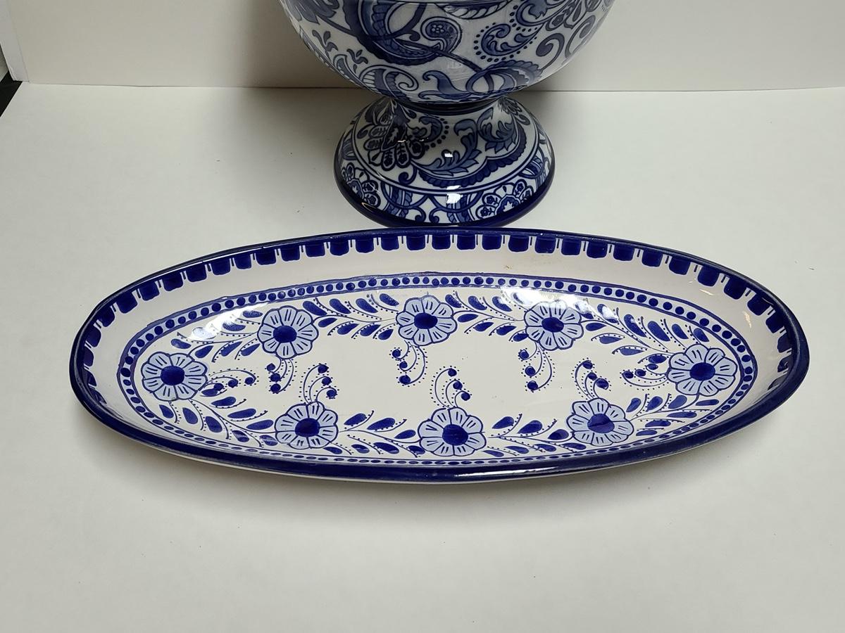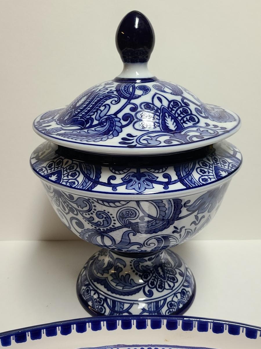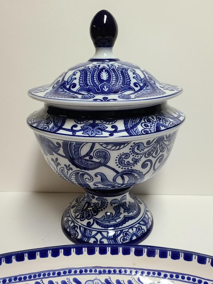 Lot 135: Large Blue & White Ginger Style Jar & Decor Plate