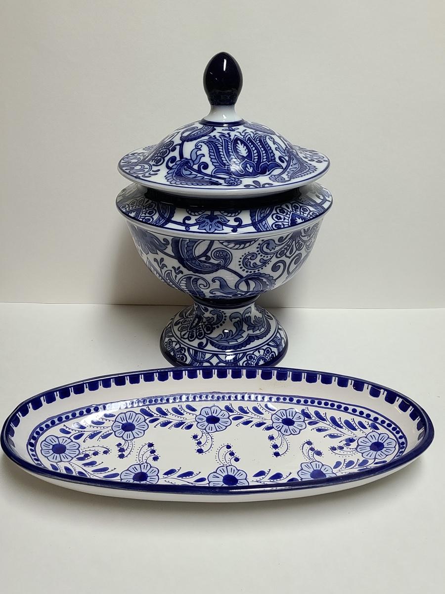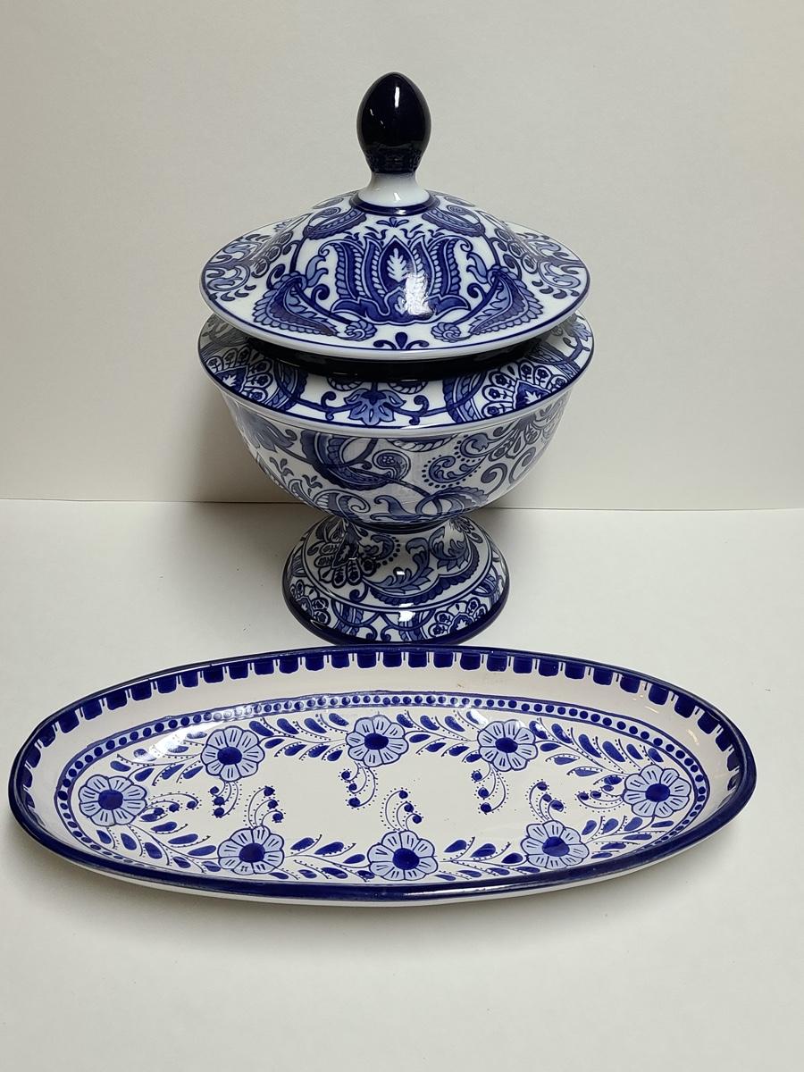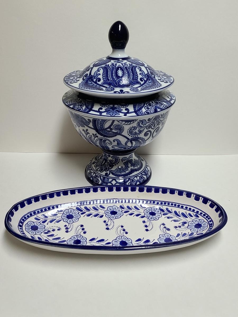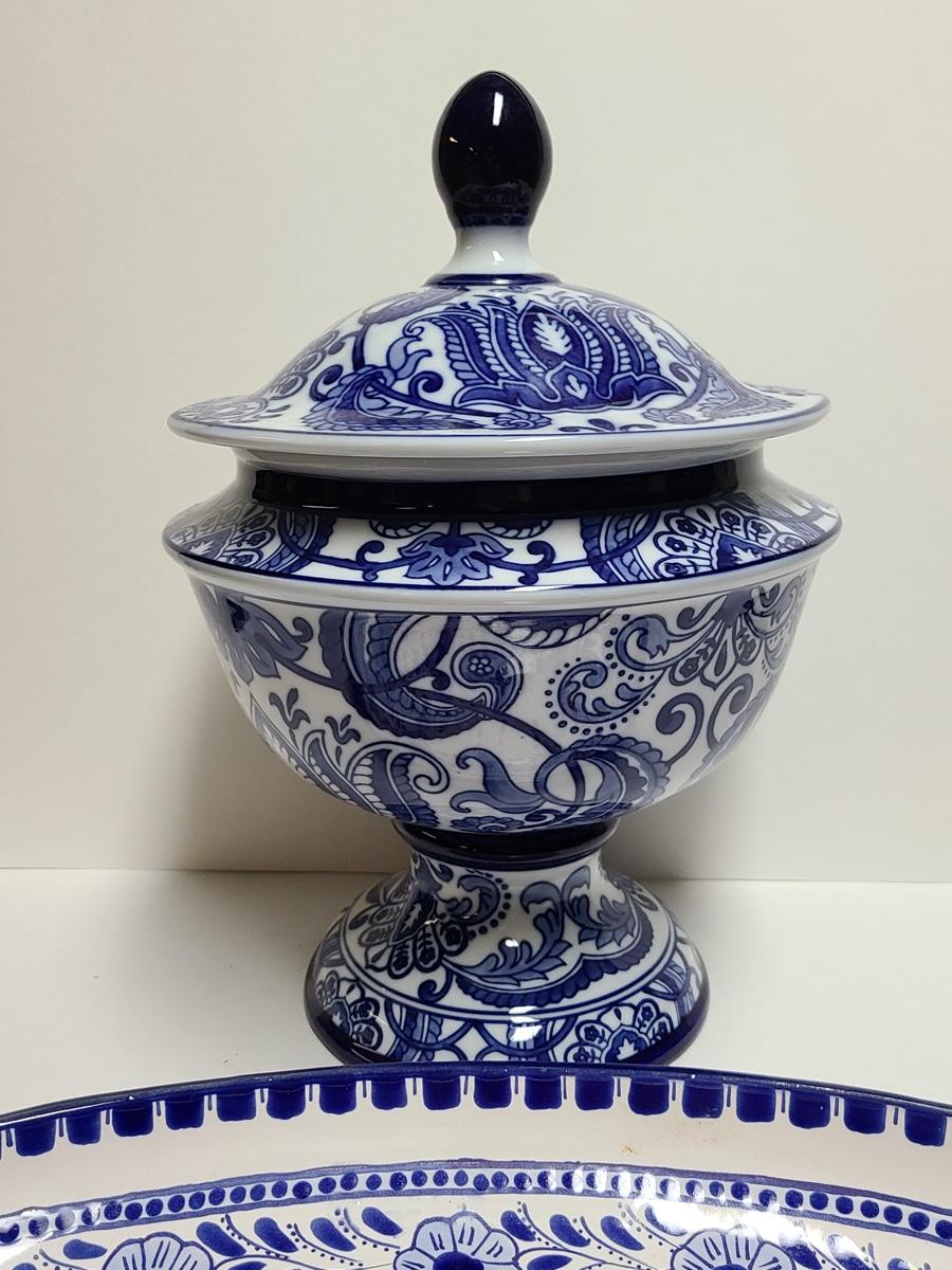 Lot 135: Large Blue & White Ginger Style Jar & Decor Plate