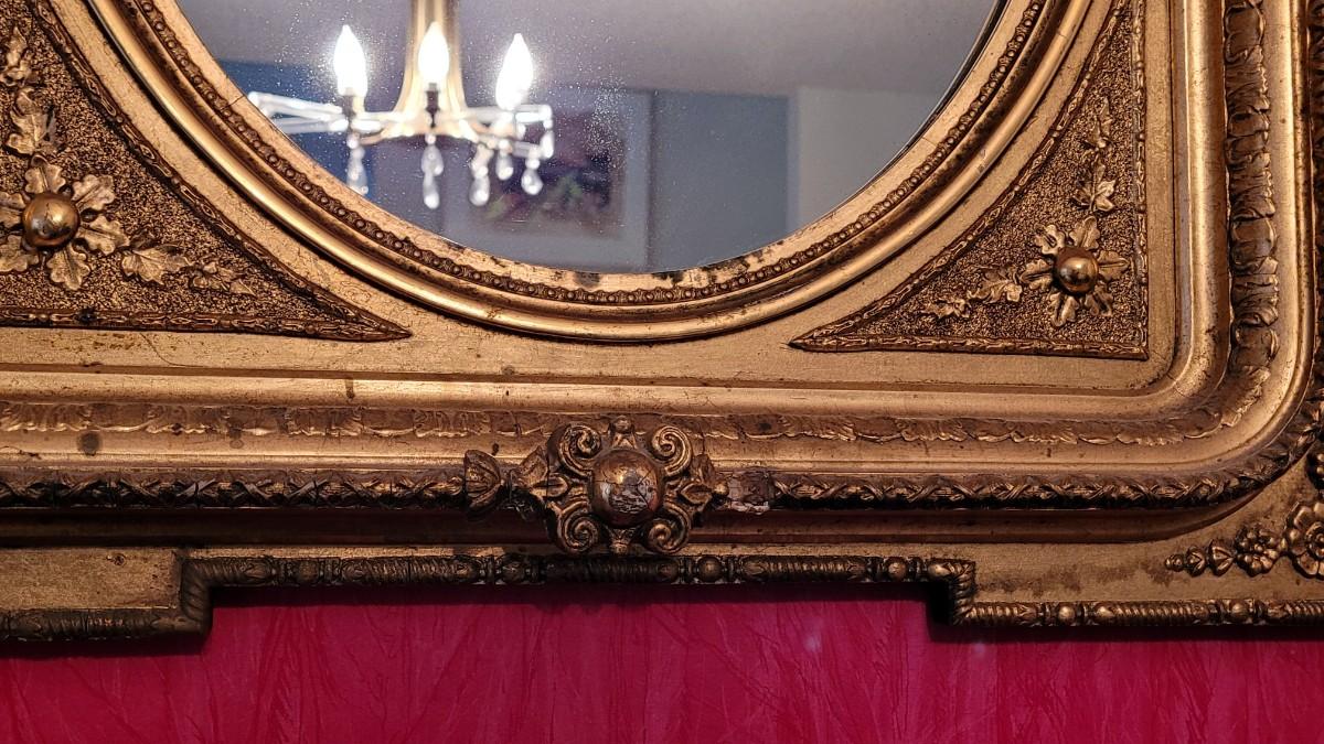 This mirror is stunning! It draws you in with all the hand carved nuances and the overall exceptional beauty. Pictures do not do this antique treasure justice.