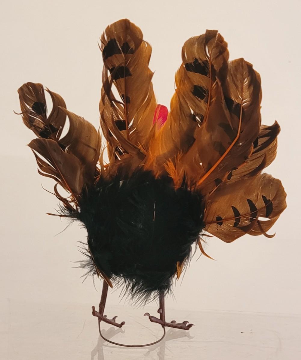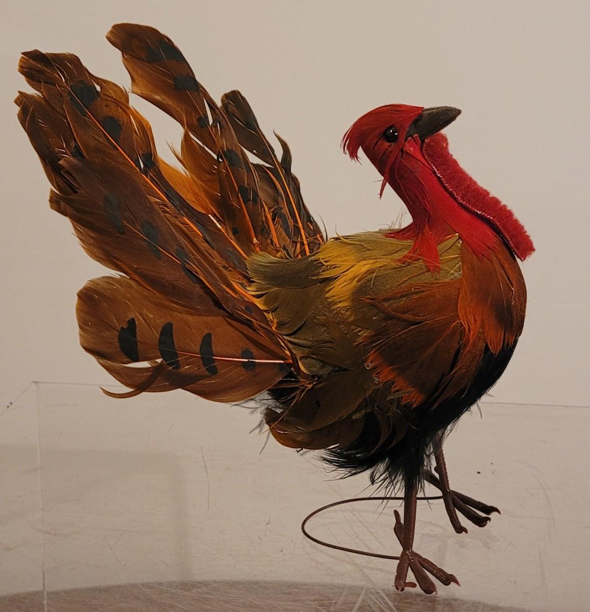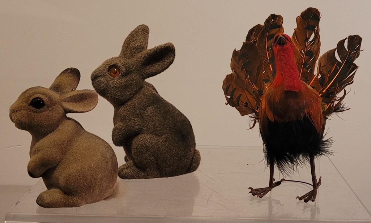 Lot 135: Vintage (2) Flocked Bunnies and Real Feather Turkey