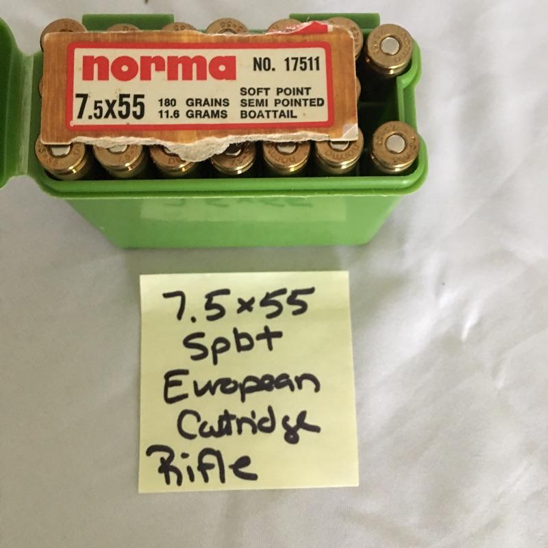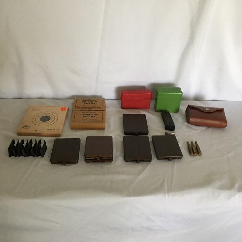 Large Variety of Ammunition. Lot includes an assortment of ammunition including 38 special hollow point and flat nose, 9mm lugar and hollow point, 30 caliber, 7.5 x 5.5 European cartridge, 12 gauge, clip and more.