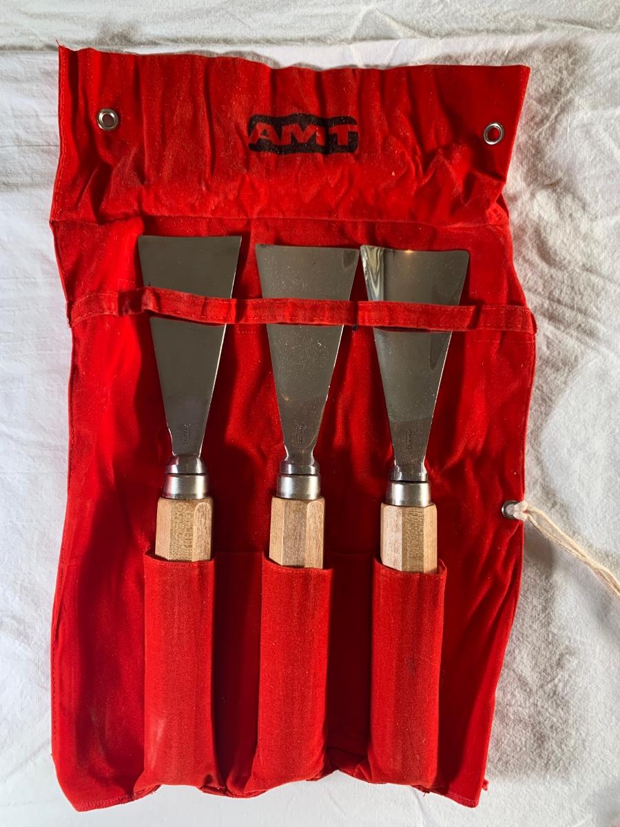 AMT set of 3 large carving gouges in original roll case.