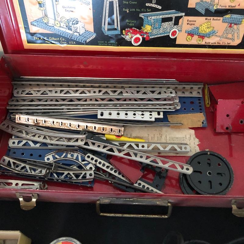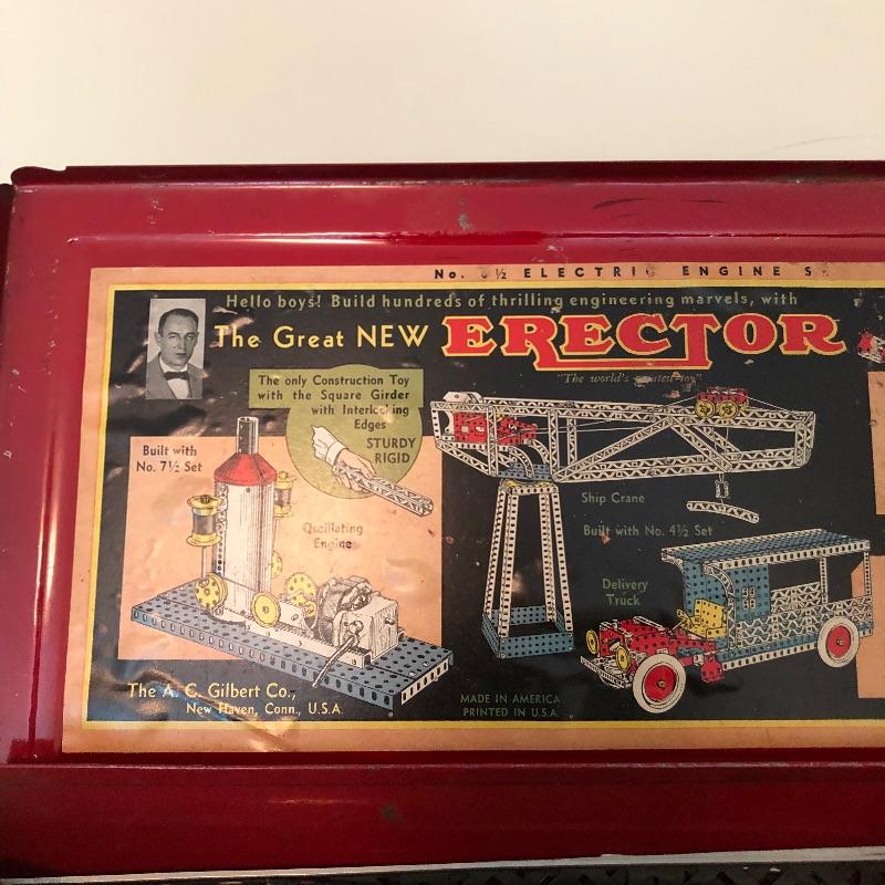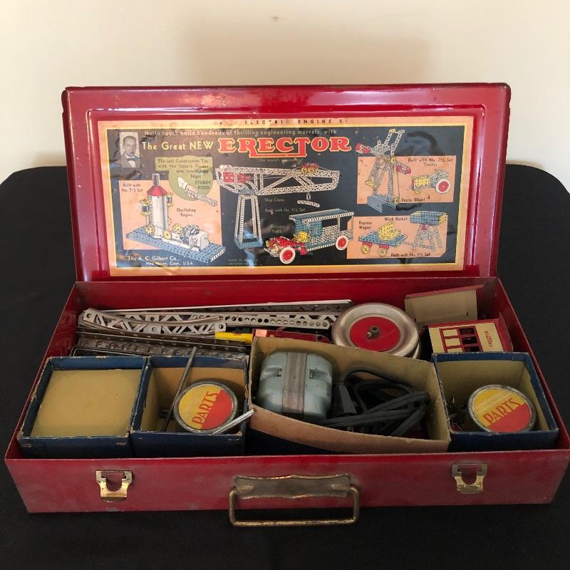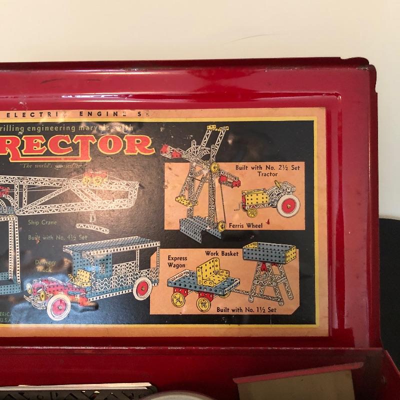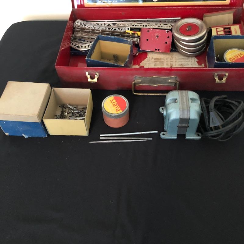 This antique Erector Set is a great find... even the box is special! Touted as the “˜World’s Greatest Toy’ back in the day, it’s full of Erector parts and gadgets; we cannot guarantee that all original parts are there. See images for all that is included. Please note the cord for the electric switch is in disrepair and wouldn’t be safely functional as is.