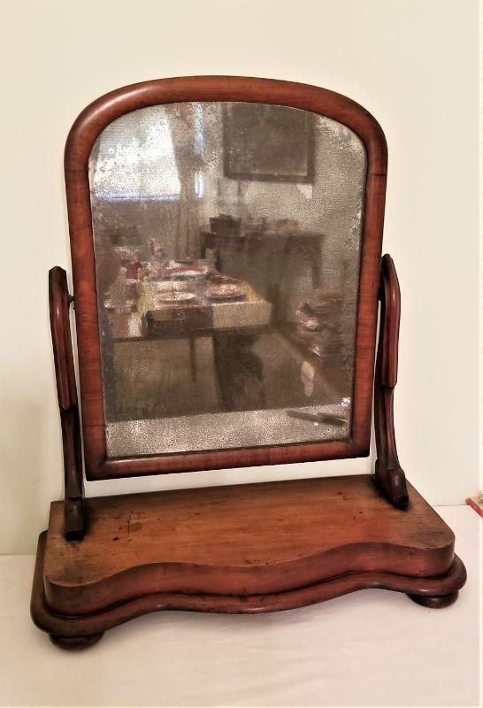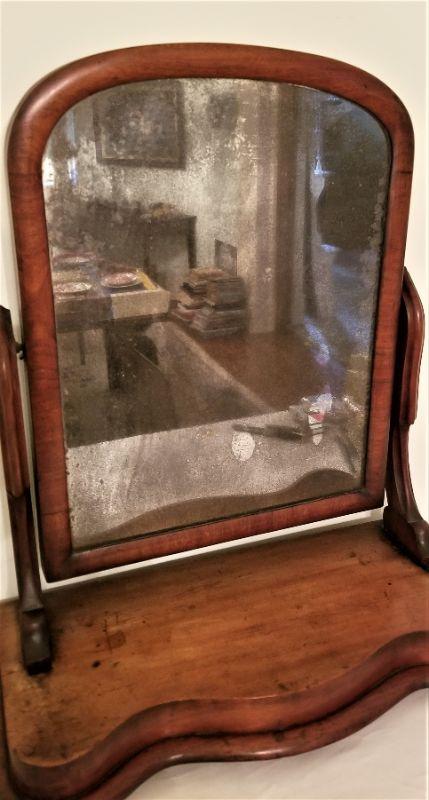 Early 20th century (ca. 1900) Walnut Shaving or Vanity Mirror. Swivel frame. Antique condition - note the condition of the mirror. Has a great old look. Measures 21.5" wide, 24" tall.
