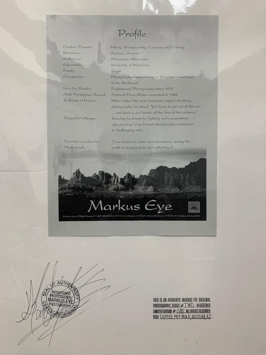 Two photographs of Arizona landscape by Markus Eye (16" X 20")