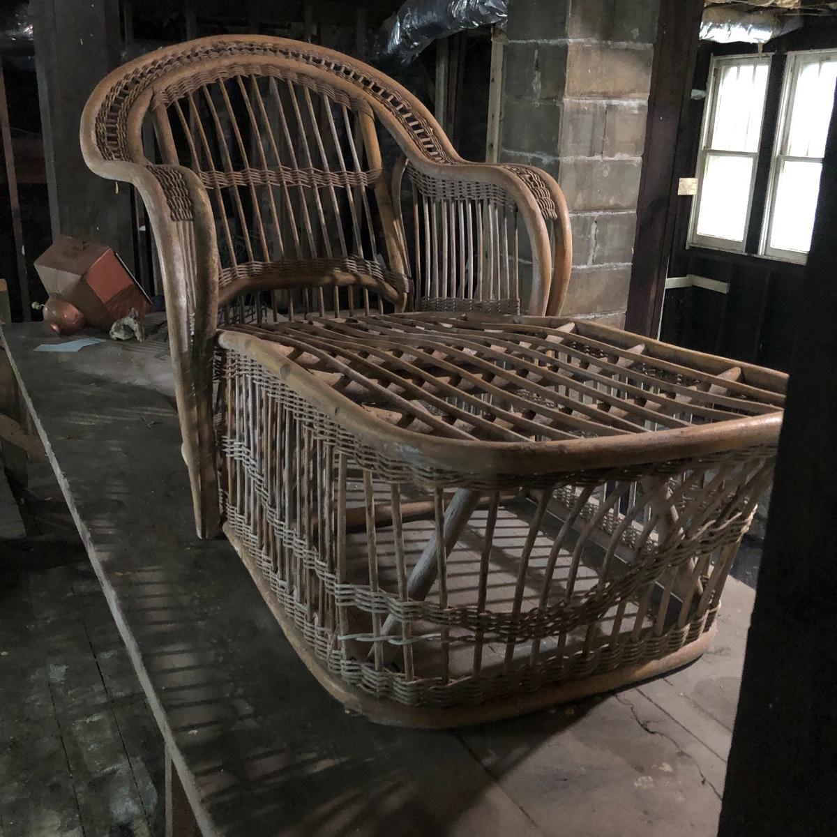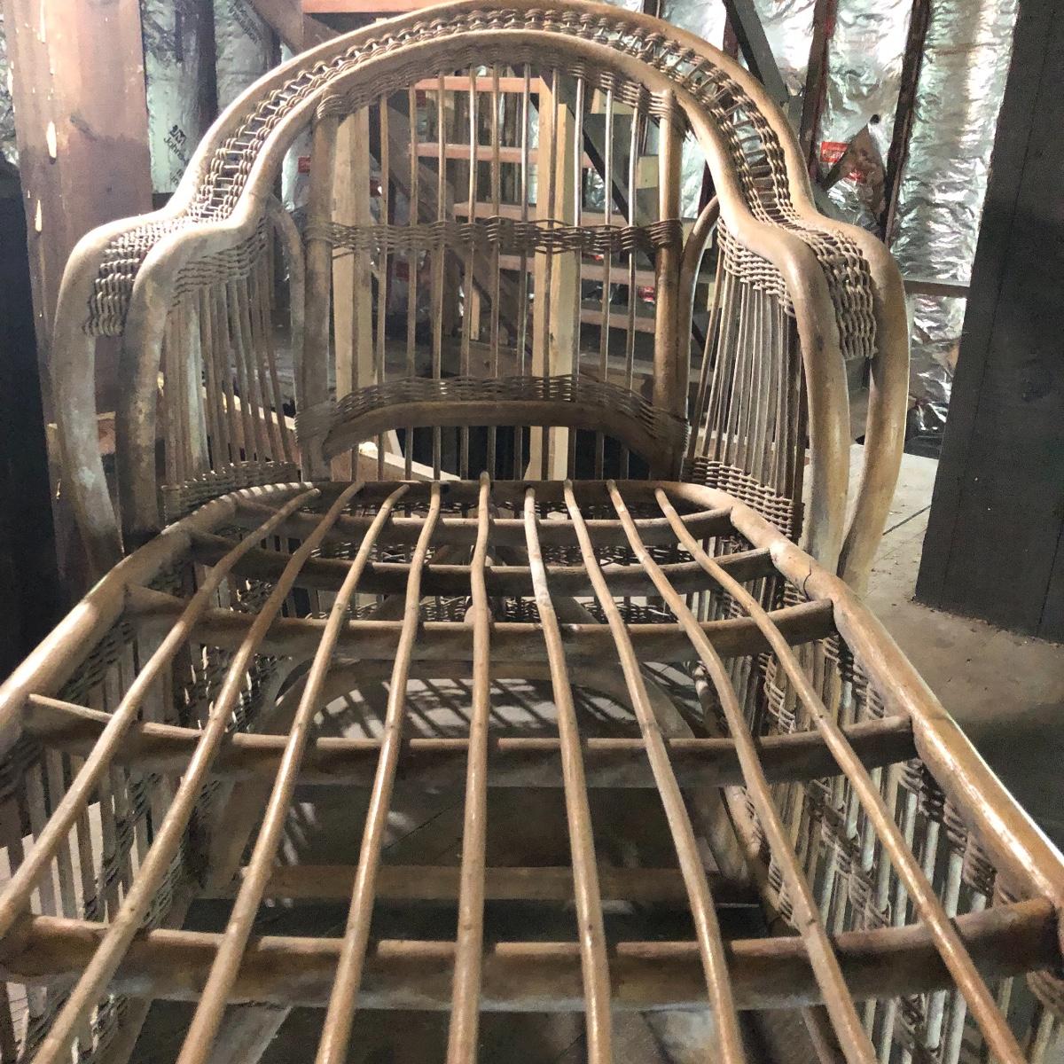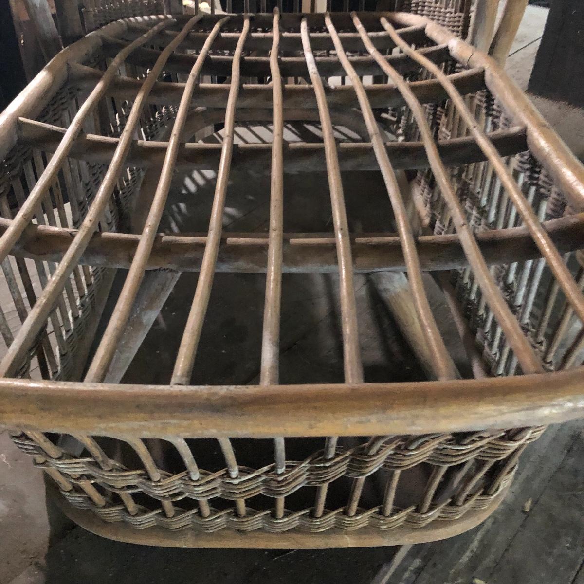 This bamboo lounger would be great for the patio or use it as part of the landscape in your garden. Lounger has mildew on it and will need a good clean. Lounger measures 31” x 60” x 33”.