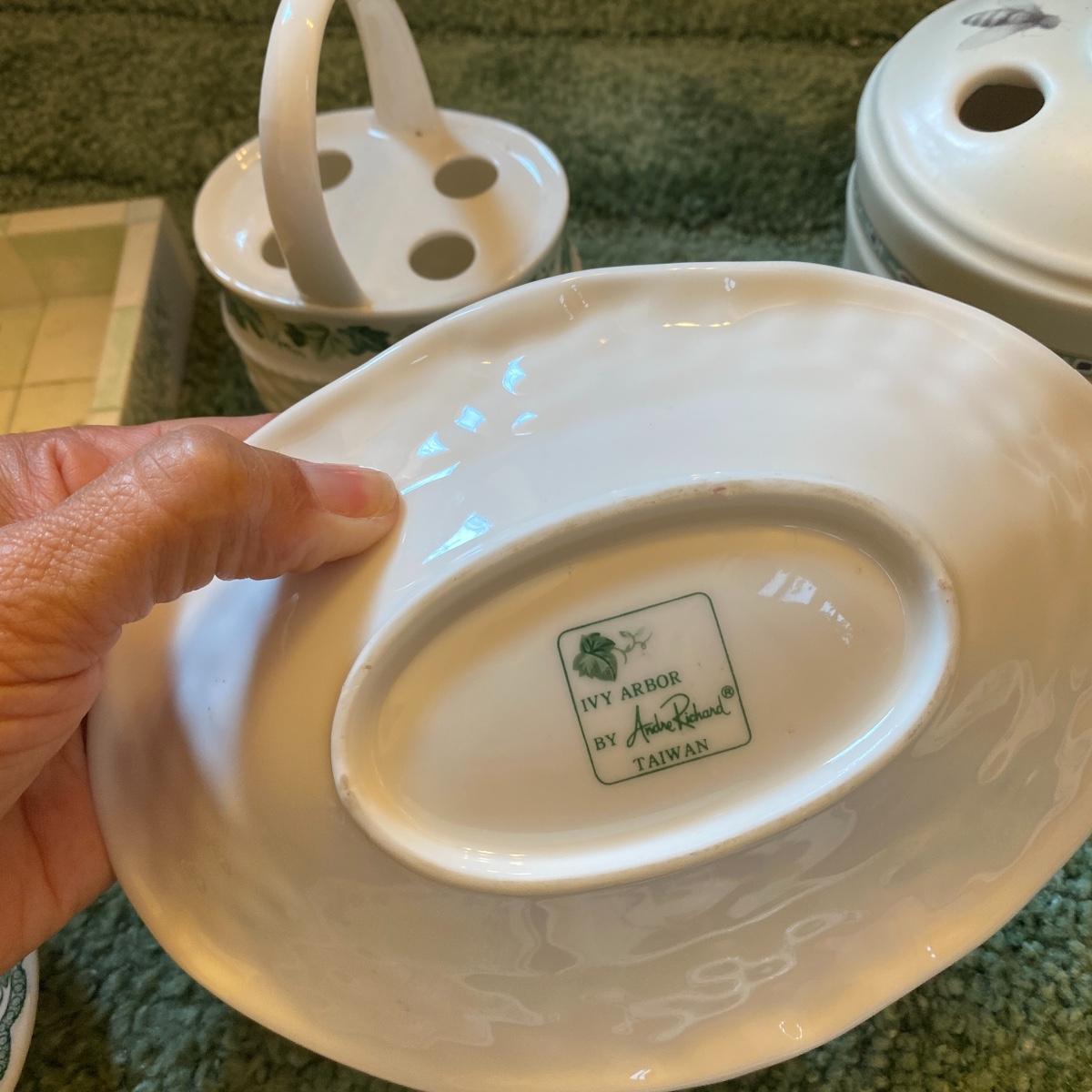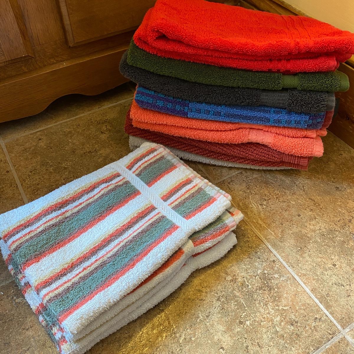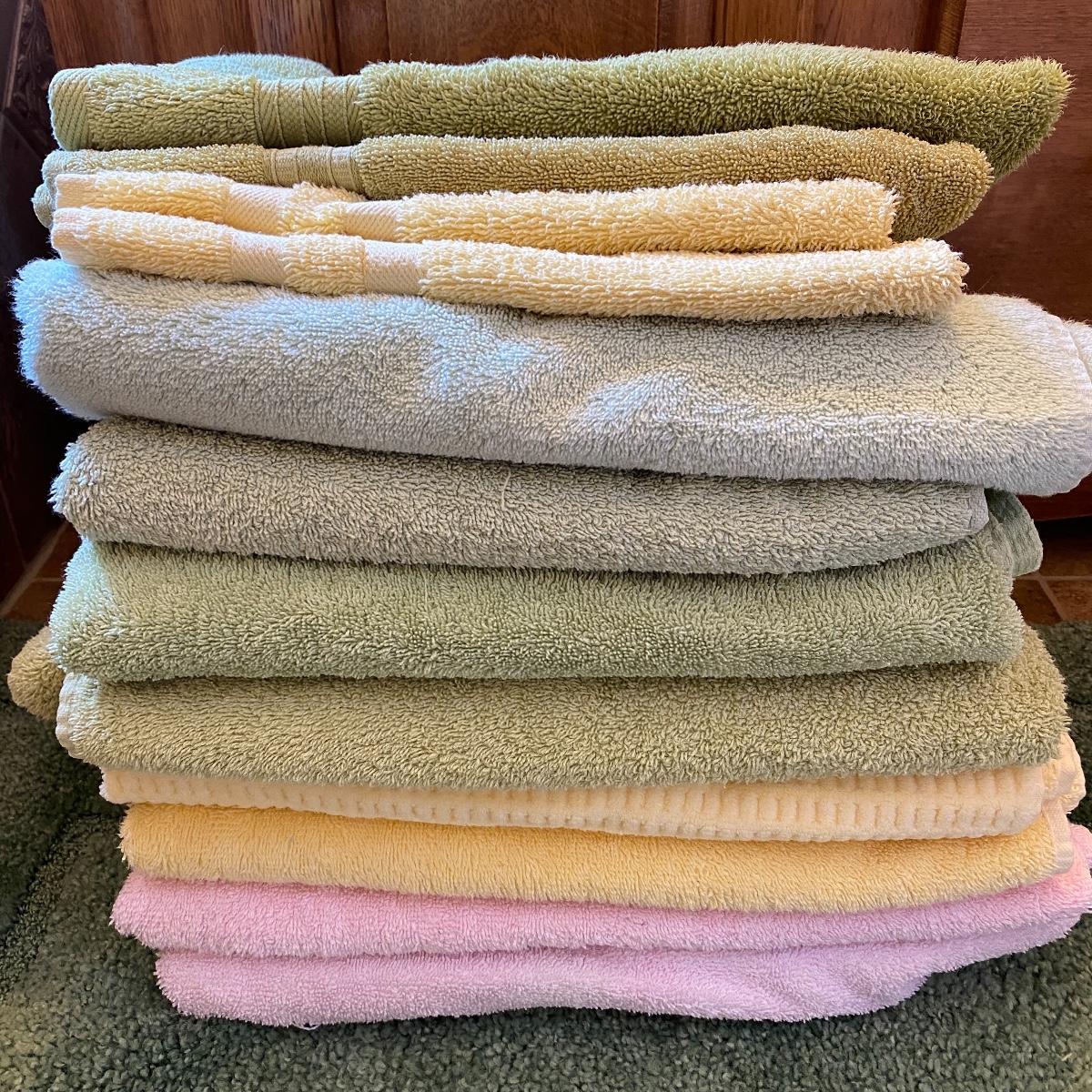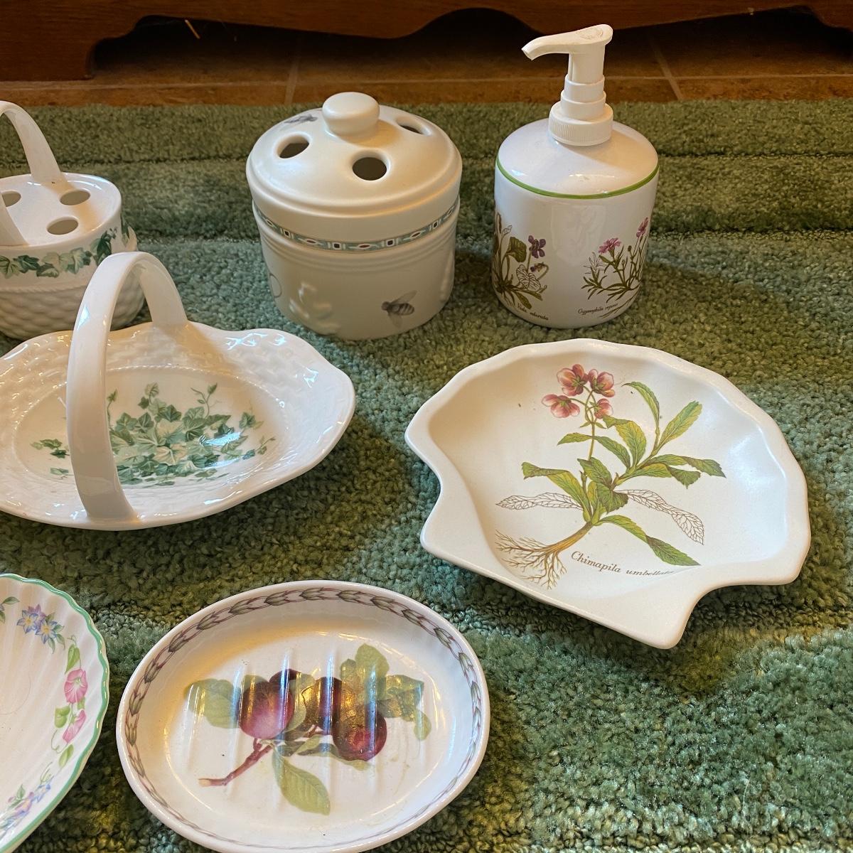 This lot includes a rainbow of colors to accessorize any bathroom! This lot includes pastel colored towels and bath mats as well a leopard print set and beach towels. There are several pairs of colorful hand towels and a bunch of bath mats in different colors, shapes and sizes. There is also several soap and toothbrush holders in green and white tones. Some English manufacturers like Wood & Sons and Poole. See photos for more details. Local pick-up only.