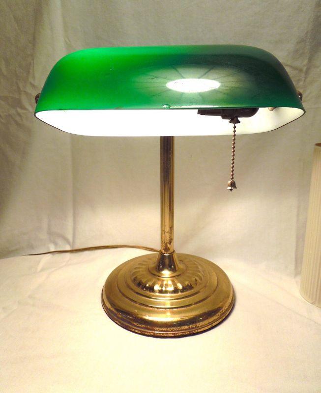 Lot 135: Brass Bookends, Frankoma Vase, Bankers Lamp et al
